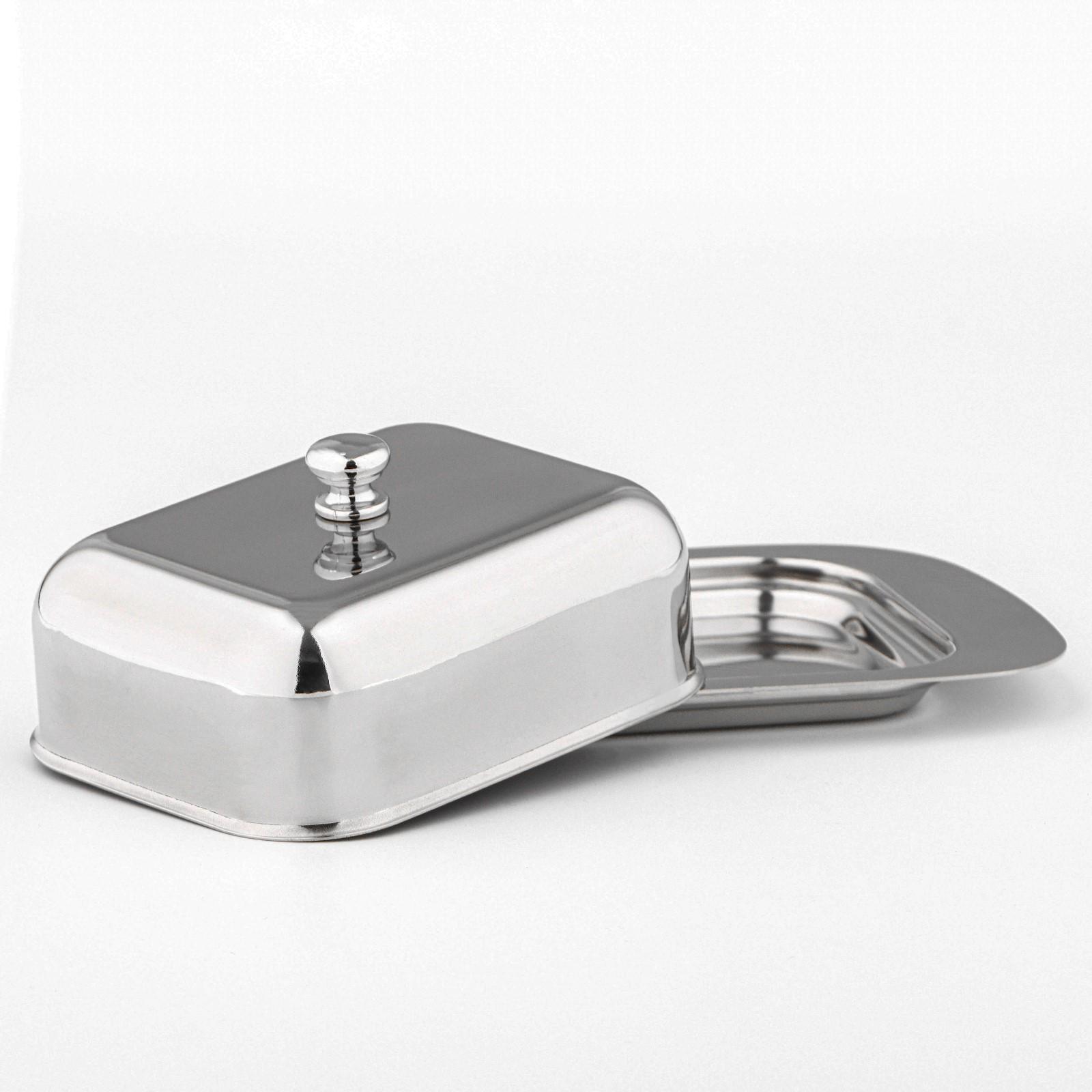 Маслёнка с крышкой, 19×12×7 см, цвет серебряный