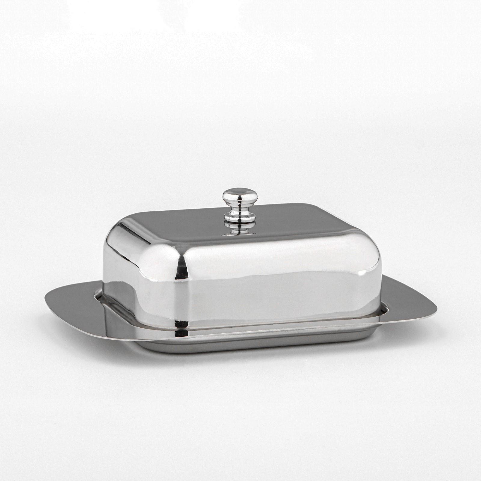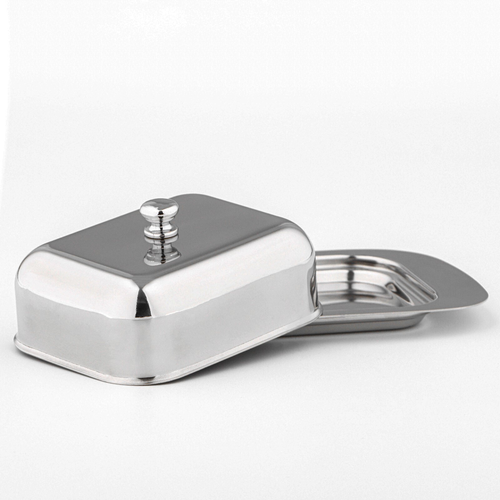 Удобная в использовании масленка может быть использована для хранения сливочного масла или сыра. Масленка с поддоном из коррозионностойкой стали не поддается ржавчине и сохранит продукты свежими, как в холодильнике, так и на обеденном столе. Крышка из стали защитит масло от загрязнений. Прекрасный классический дизайн впишется в любой кухонный интерьер.