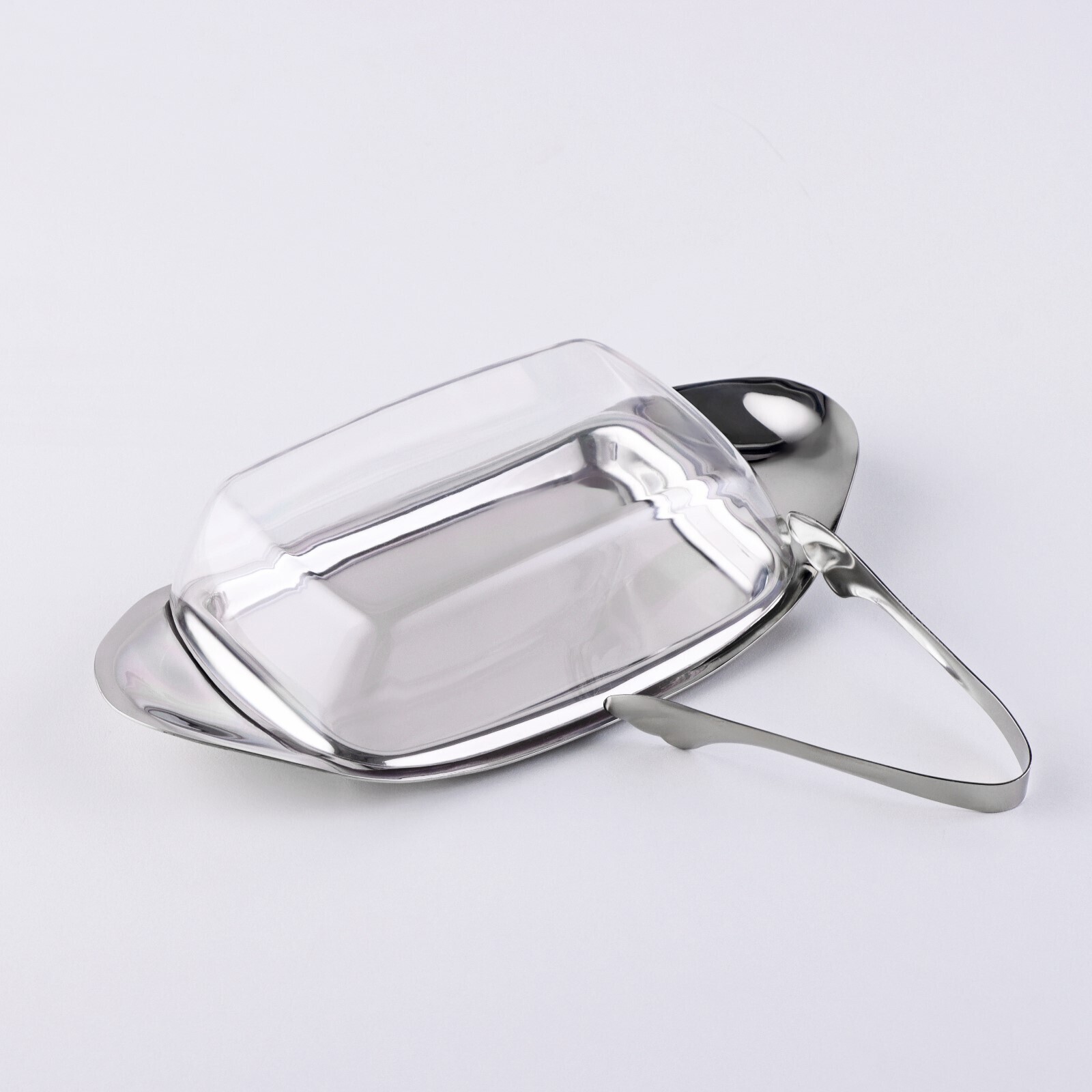 Удобная в использовании масленка может быть использована для хранения сливочного масла или сыра. Масленка с поддоном из нержавеющей стали не поддается коррозии и сохранит продукты свежими, как в холодильнике, так и на обеденном столе. Прозрачная пластиковая крышка защитит масло от загрязнений. Прекрасный классический дизайн впишется в любой кухонный интерьер.
