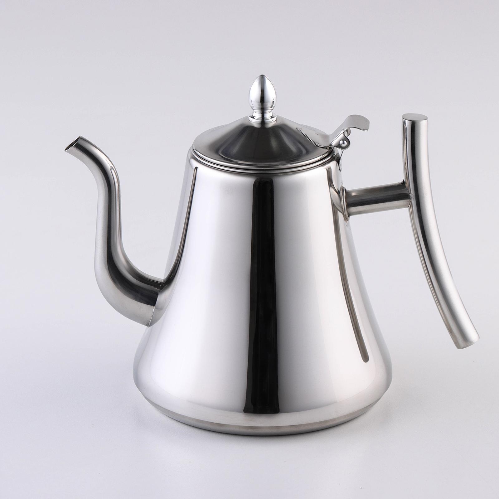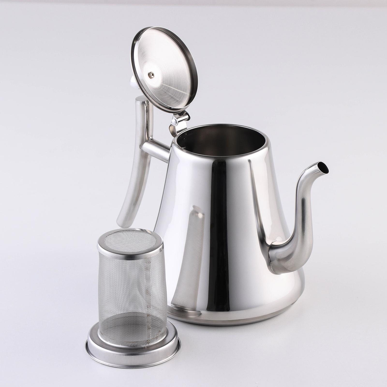 Заварочный чайник изготовлен из высококачественной нержавеющей стали, имеет металлическое сито.