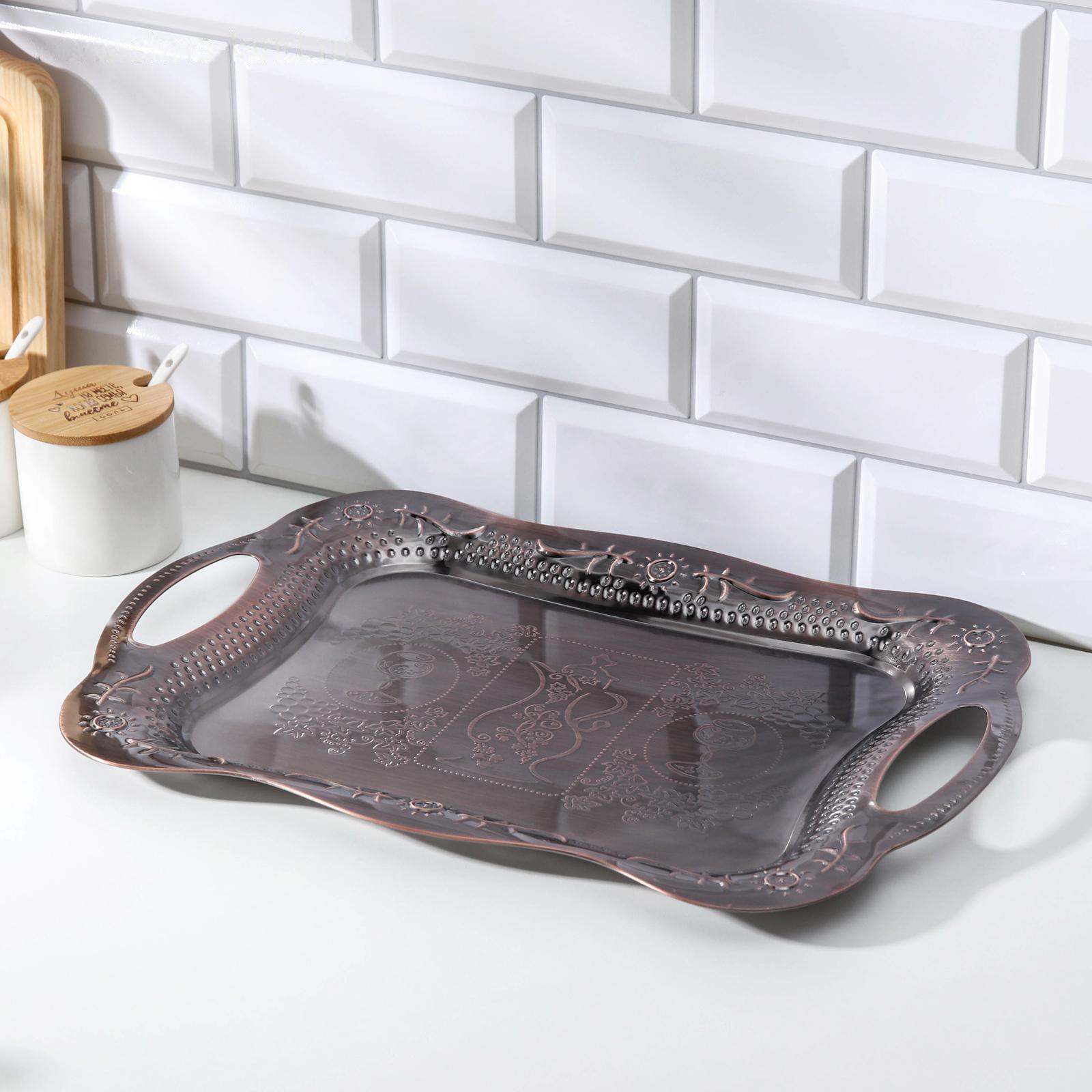 Поднос с ручками «Изобилие», 44,5×30,5×3 см, цвет бронзовый