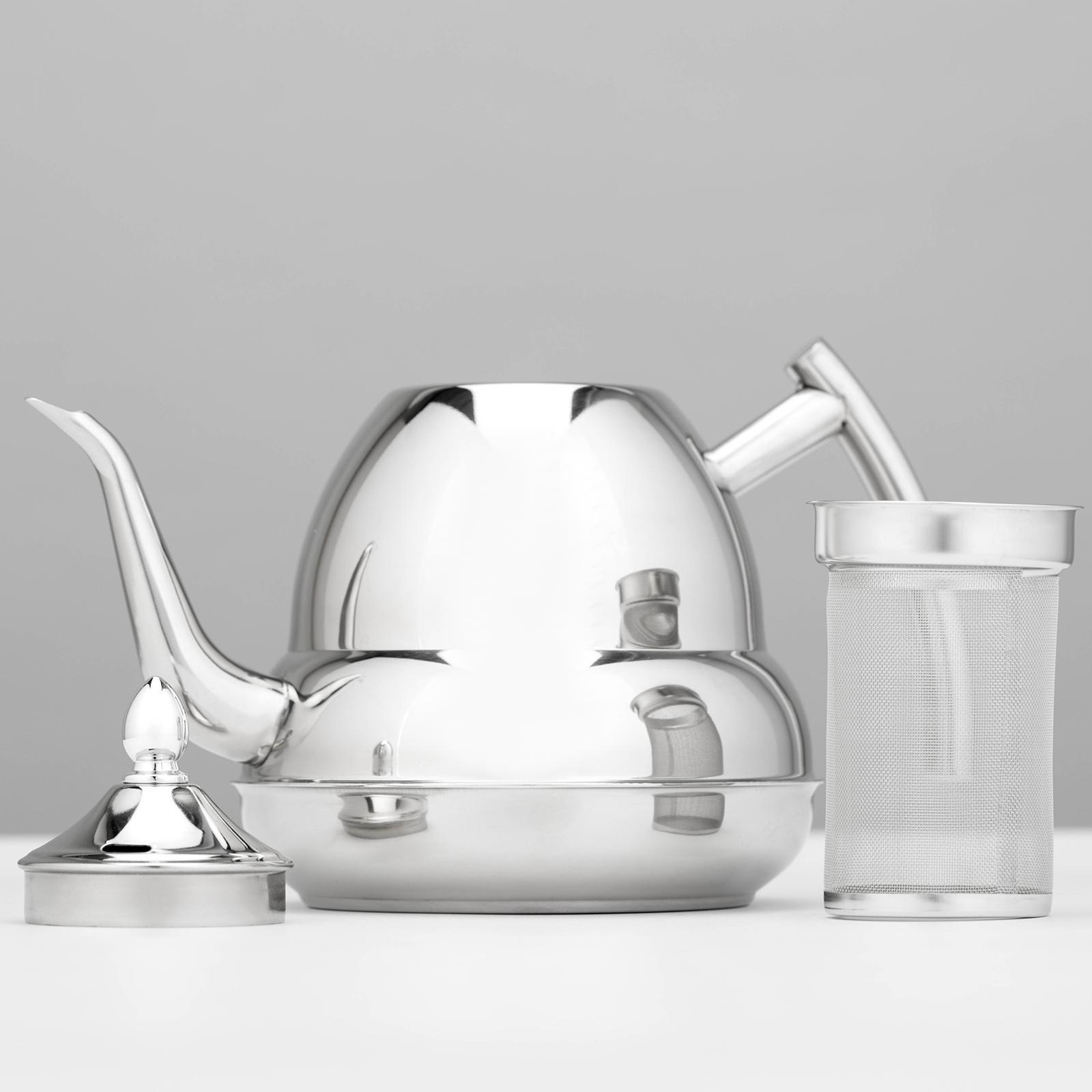 Заварочный чайник изготовлен из высококачественной нержавеющей стали, имеет металлическое сито. Он поможет Вам в приготовлении вкусного и ароматного чая, а также станет украшением вашей кухни. Внутреннее металлическое сито для заварки выполняет функцию фильтра, который задержит чаинки. Заварник удобен в использовании и станет приятным и практичным подарком на любой праздник.