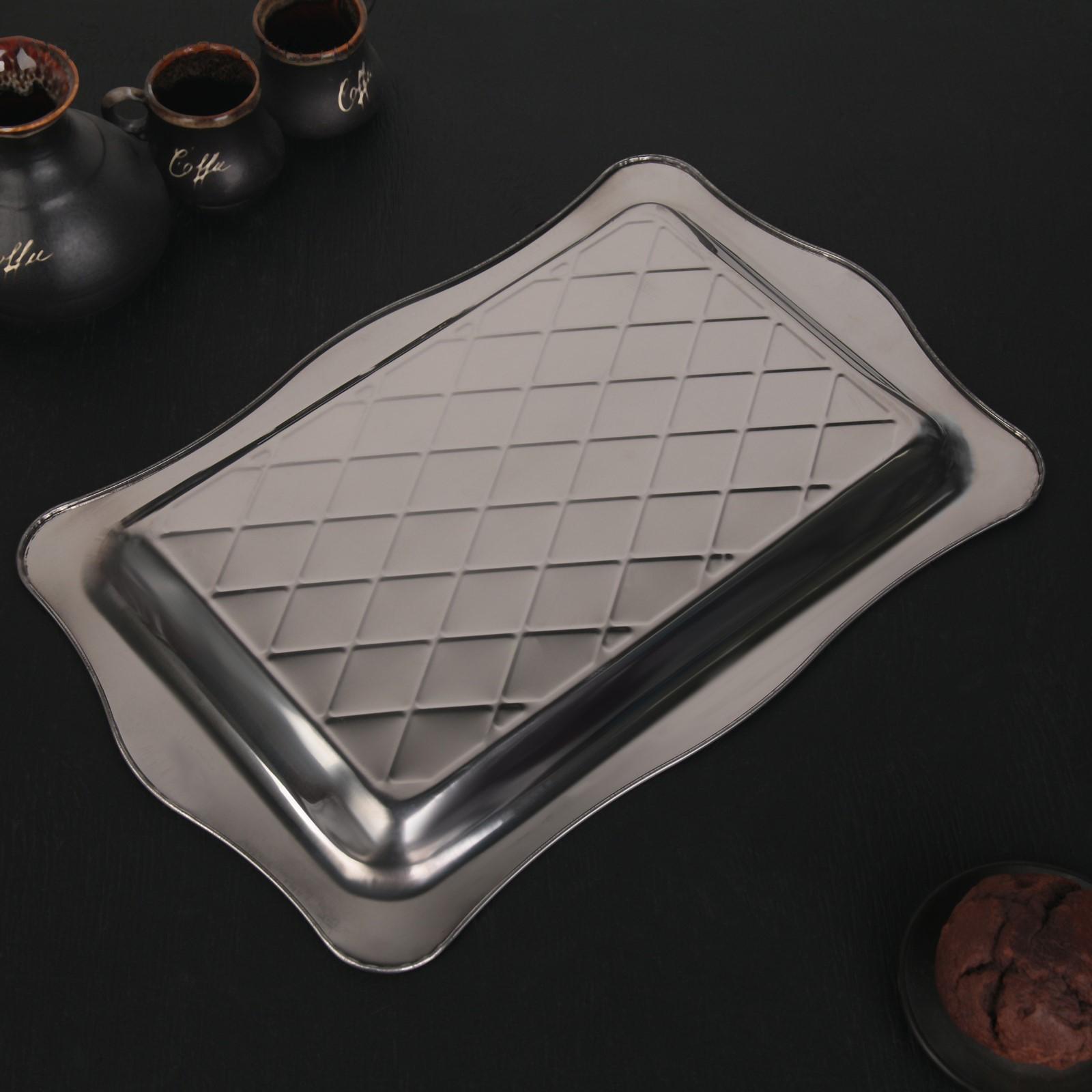 Поднос, 42×28×3 см, цвет серебряный