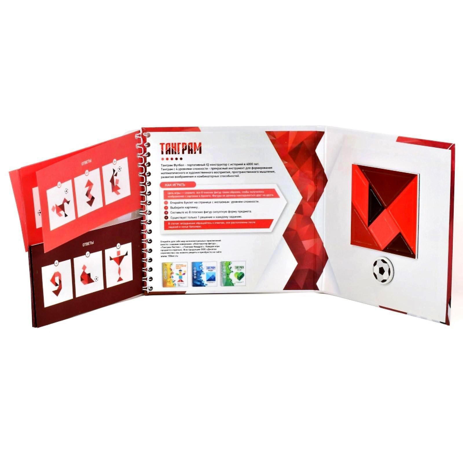 Цель игры – сложить все 7 плоских фигур и мяч таким образом, чтобы получилось изображение с картинками на буклете. Фигуры не должны накладываться друг на друга.