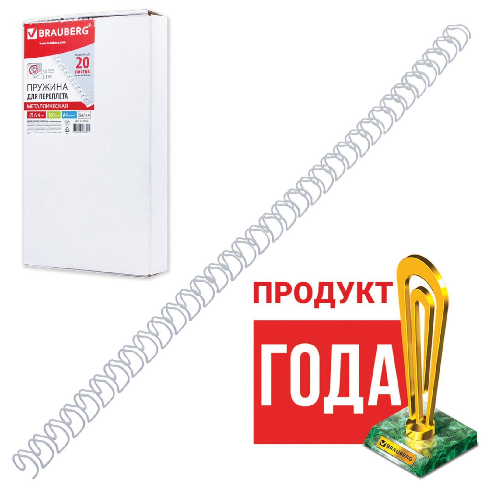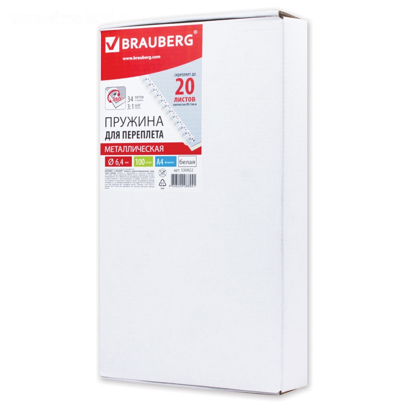 Металлическая пружина для переплета документов BRAUBERG совместима с переплетными машинами для металлических пружин. Преимуществом является эстетичный внешний вид и возможность раскрывать документ на 360 градусов. Рекомендуется использовать для переплета документов объемом от 2 до 45 листов. Состоит из колец диаметром 6,4 мм. Выполнены в белом цвете. В упаковке 100 штук.