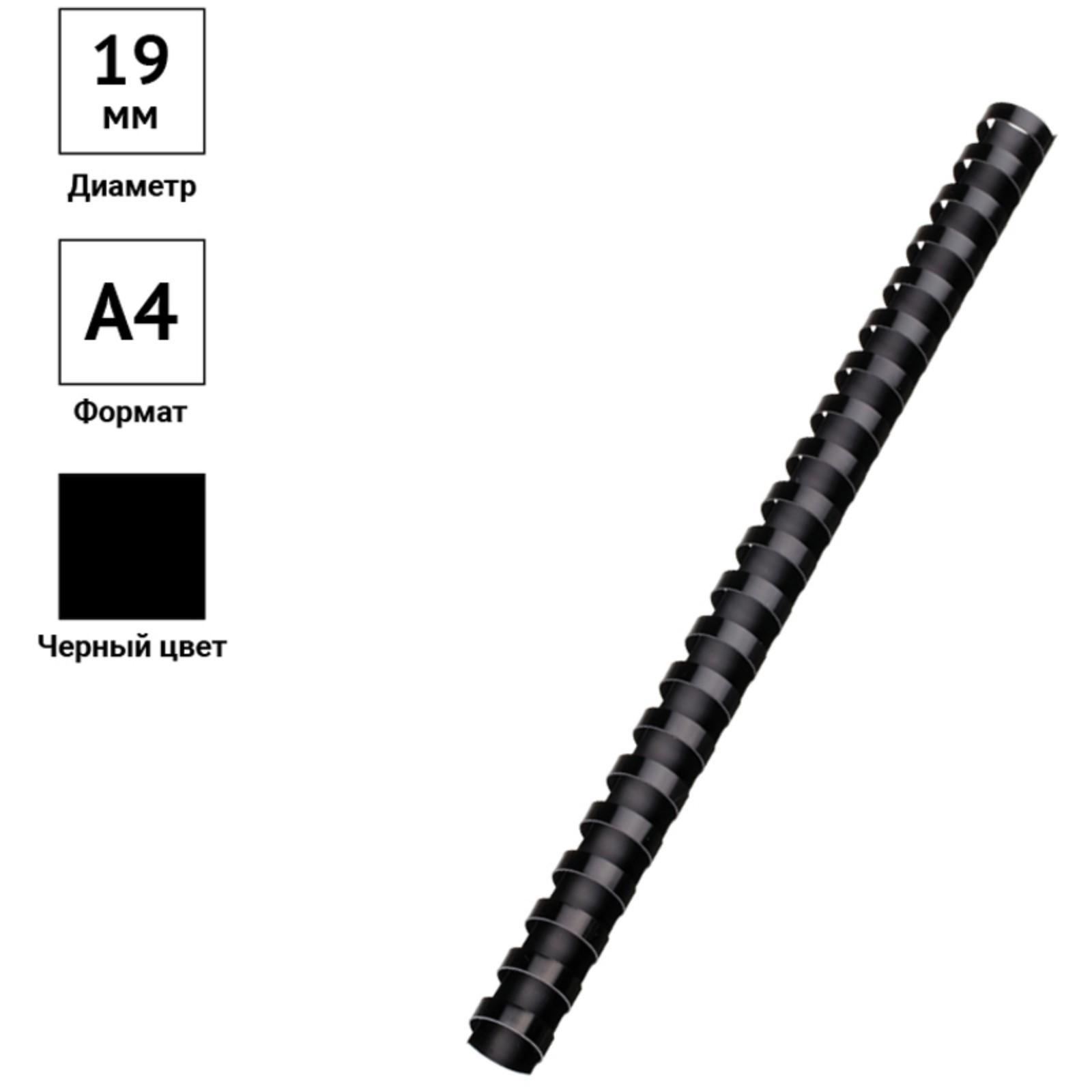 Пружины пластиковые для переплёта 100 штук, 19 мм OfficeSpace, чёрные