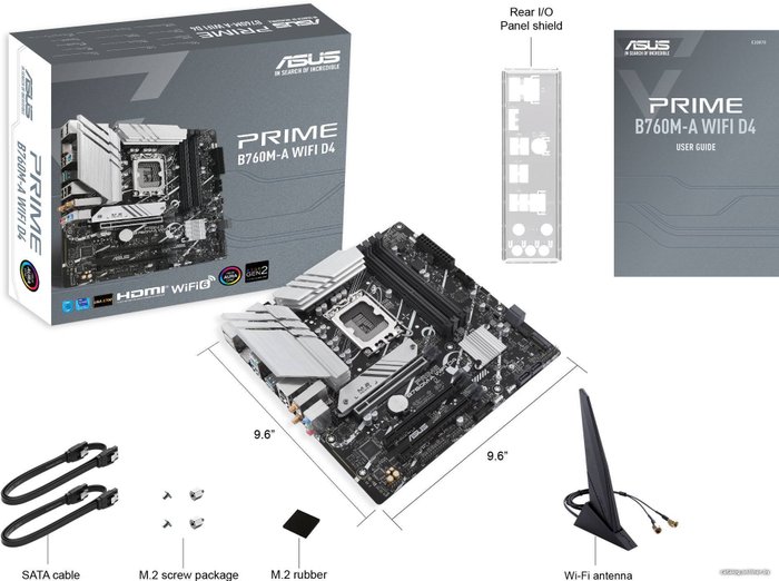 Комплектация2 кабеля SATA 6 Гбит/с1 антенна ASUS Wi-Fi1 рамка разъемов1 резиновая упаковка M.21 пакет винтов для твердотельного накопителя M.21 руководство пользователя