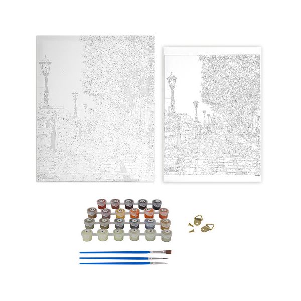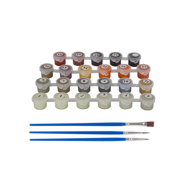 В набор входит: 1 хлопковый холст на подрамнике с контуром, 1 лист бумаги для тренировки, набор из 22 акриловых красок объемом 3 мл каждая, 3 синтетические кисти и комплект металлических креплений для подвешивания на стену. Краски укрывистые, быстро сохнут без потери цвета. Каждый цвет в наборе подходит под конкретный номер, благодаря чему нет необходимости смешивать краски. Однако, если Вы хотите добиться нового оттенка, наши краски с легкостью позволят это сделать благодаря отличной смешиваемости. 3 синтетические кисти разного размера идеально подойдут для закрашивания элементов различной сложности. Холст из 100% хлопка плотностью 290 г\м2 с высококачественной печатью и отличным натяжением. При работе с картиной дополнительно могут понадобиться: емкость с водой для мытья кисти и салфетка для удаления воды с кисти (В КОМПЛЕКТ НЕ ВХОДЯТ). Подходит для потребителей всех возрастов от 8 до 80 лет. Поставляется в картонной упаковке с ручкой.