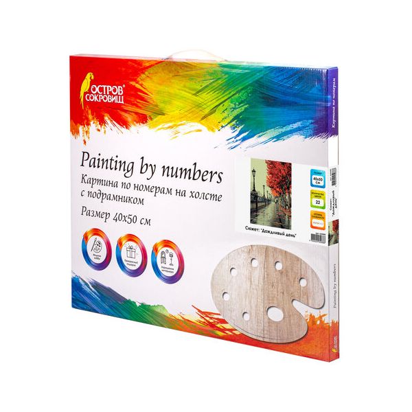 Описание товара Картина по номерам 40х50 см, ОСТРОВ СОКРОВИЩ "Дождливый день", на подрамнике, акриловые краски, 3 кисти, 662480