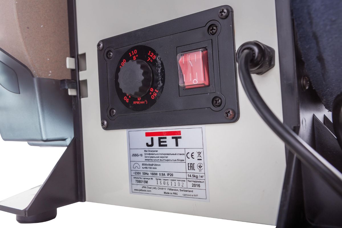 Полировально-шлифовальный станок JET JSSG-10 используется для заточки и обработки деталей с использованием водяного охлаждения круга. Мощность – 200 Ватт; размеры кругов — 250х50х15 / 230х30 мм; вес — 15 кг. Преимущества модели: отсутствие нагрева поверхности и искр при заточке;