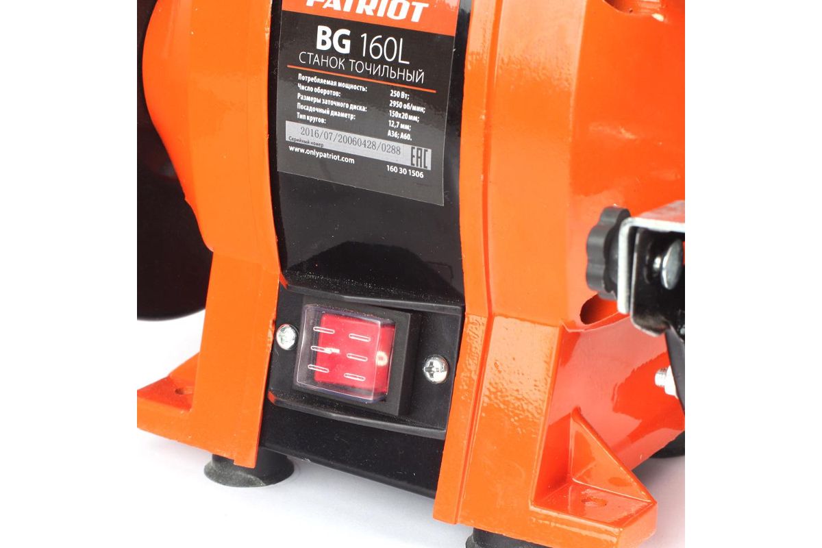 Станок точильный PATRIOT BG 160L 250 Вт; 2950 об/мин; Посадочный д.: 12,7 мм; 150 х 20 мм, А36, А6