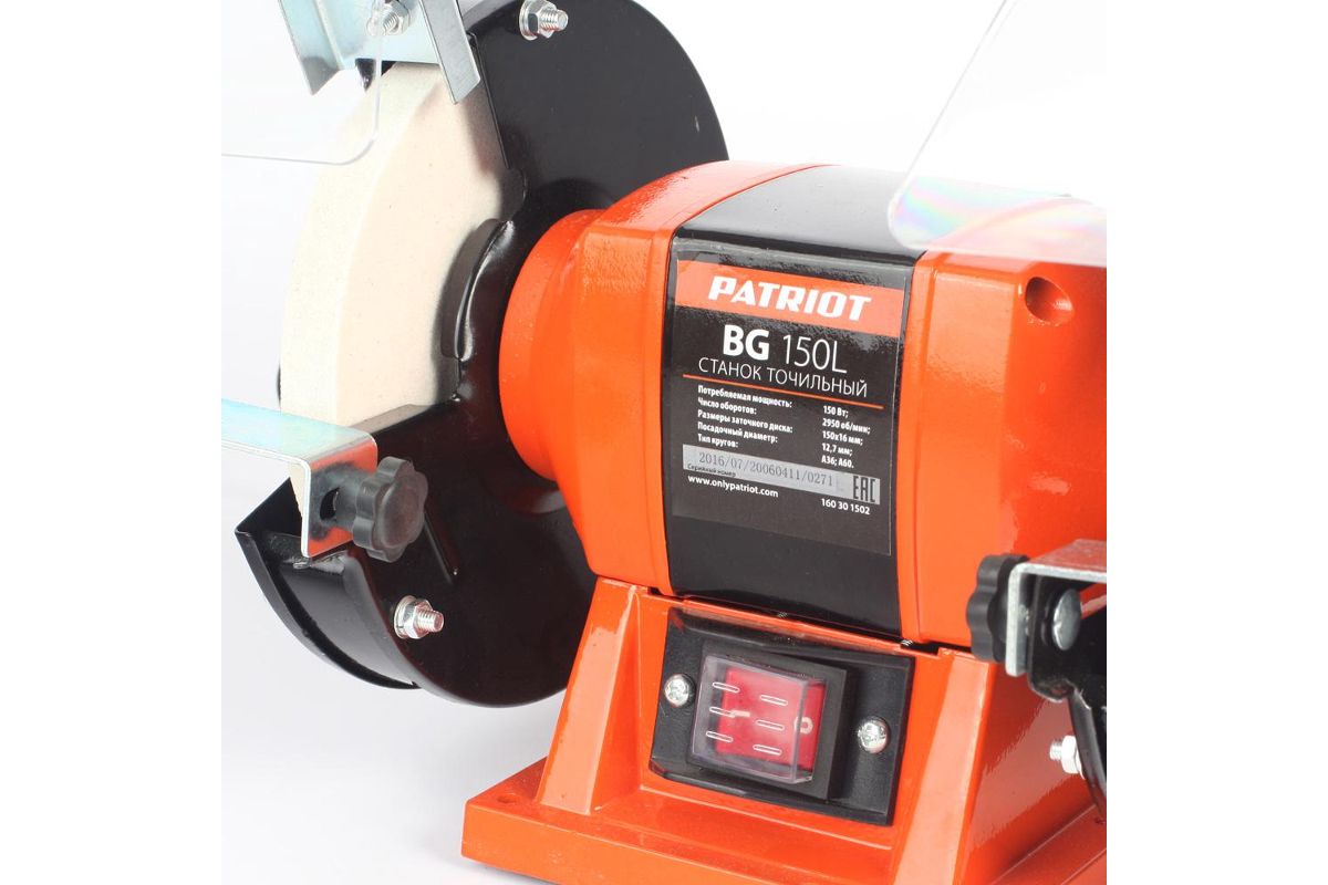 Станок точильный PATRIOT BG 150L 150 Вт, 2950 об/мин; Посадочный д. 12,7 мм; 150 х 20 мм, А36, А60