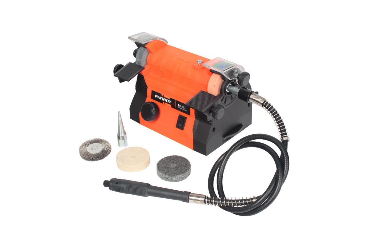 Станок точильный PATRIOT BG 110 с гравером на гибком валу и набором насадок, мощность 100 Вт