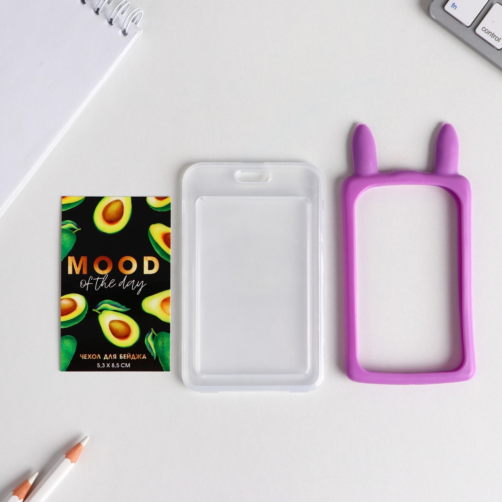 Чехол для бейджа с ушками "Mood of the day", 11.5 х 7.5 см