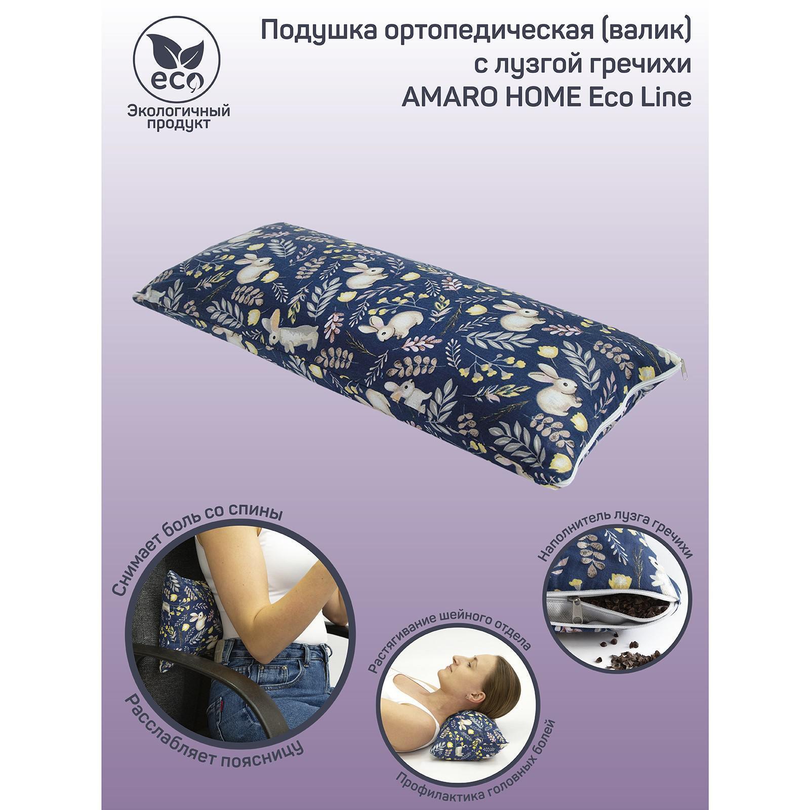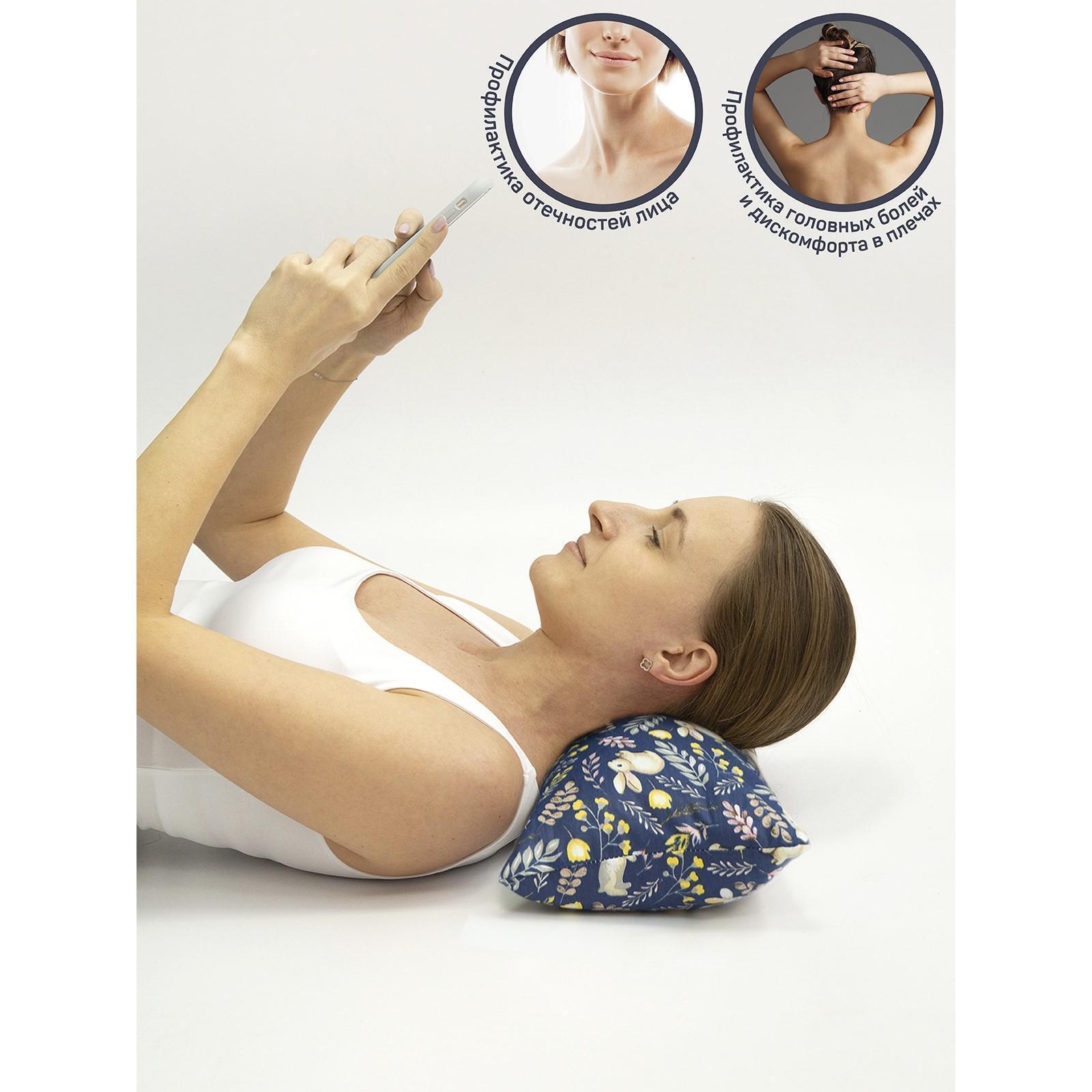 Подушка ортопедическая валик с лузгой гречихи, размер 20х50 см,, принт зайчики, цвет синий