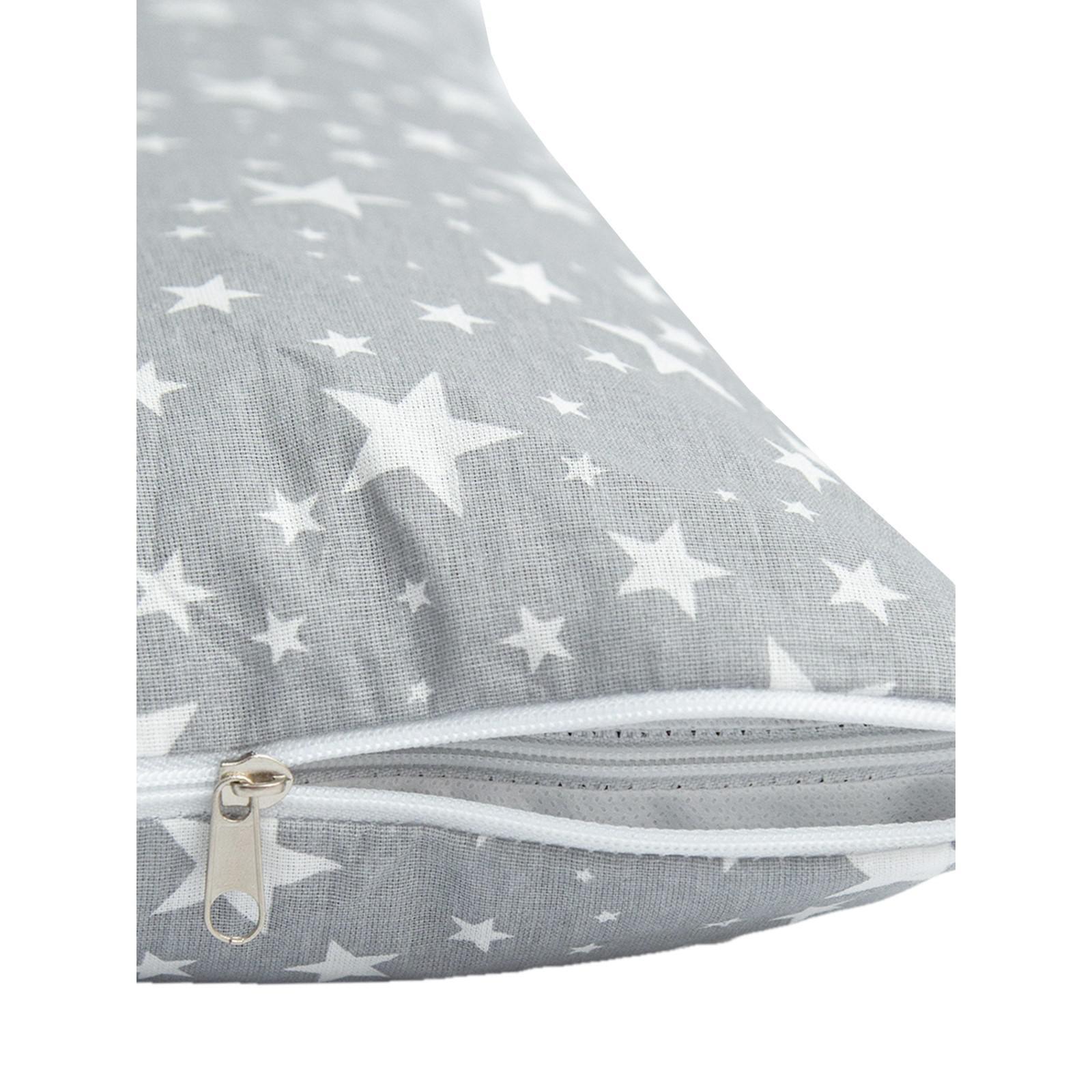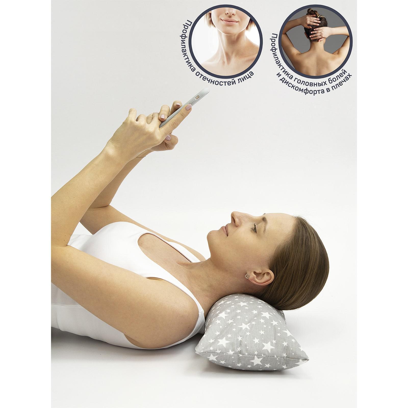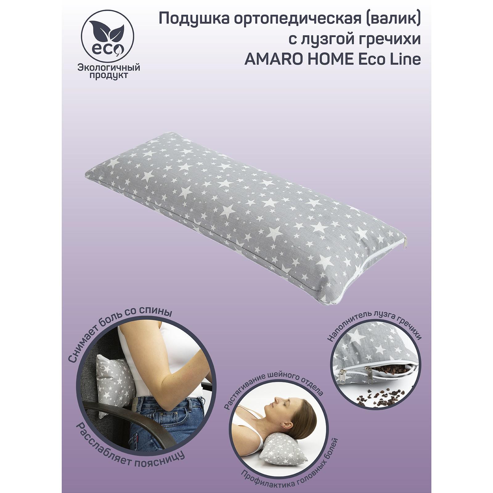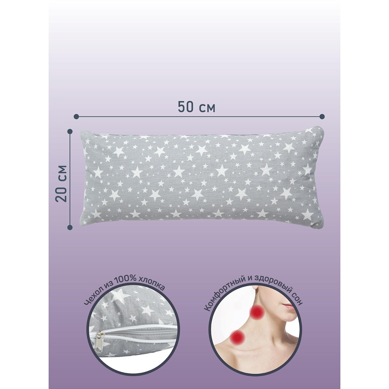 Подушка ортопедическая валик с лузгой гречихи, размер 20х50 см, звезды, цвет серый