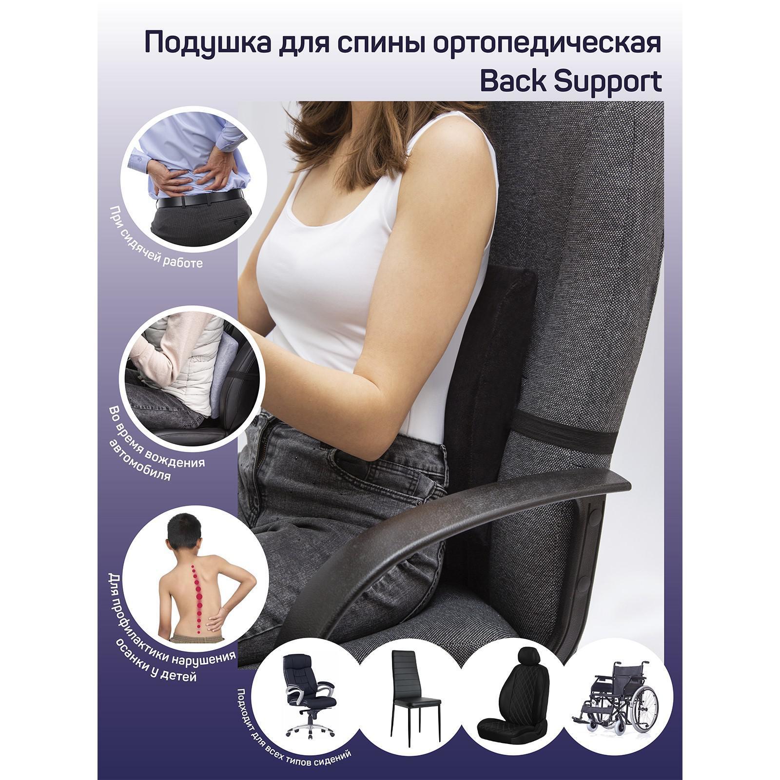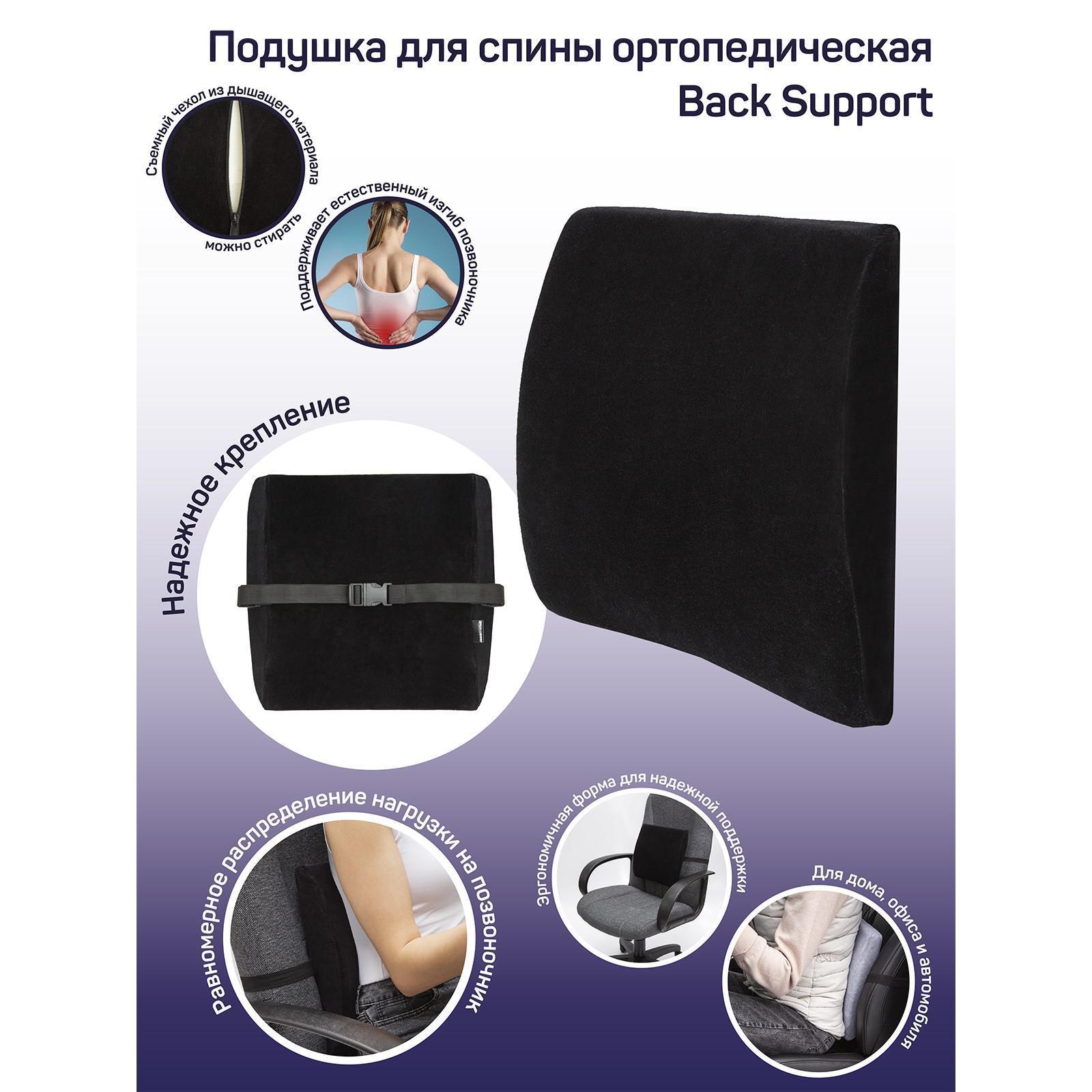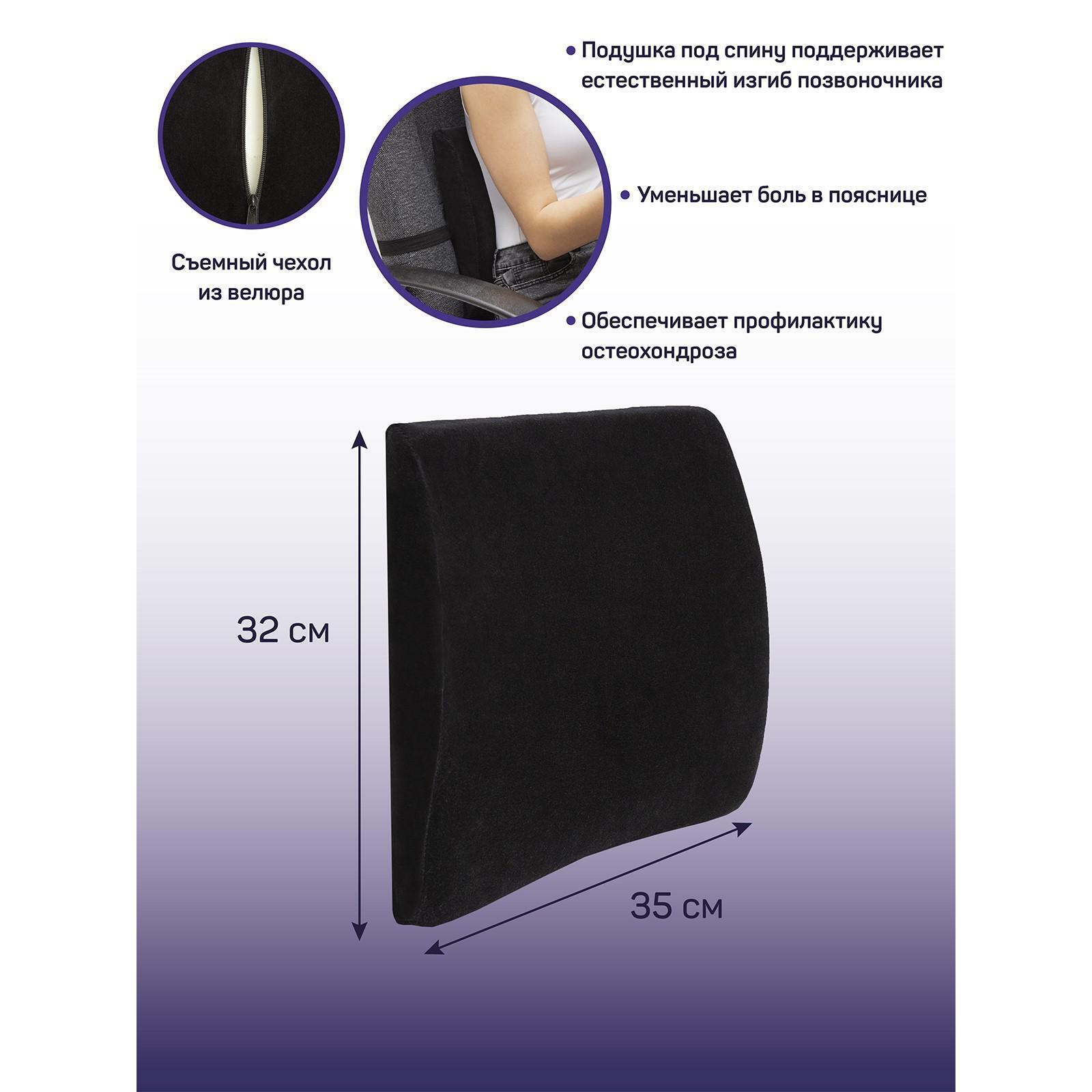 Подушка для спины ортопедическая, размер 35х32 см, цвет чёрный