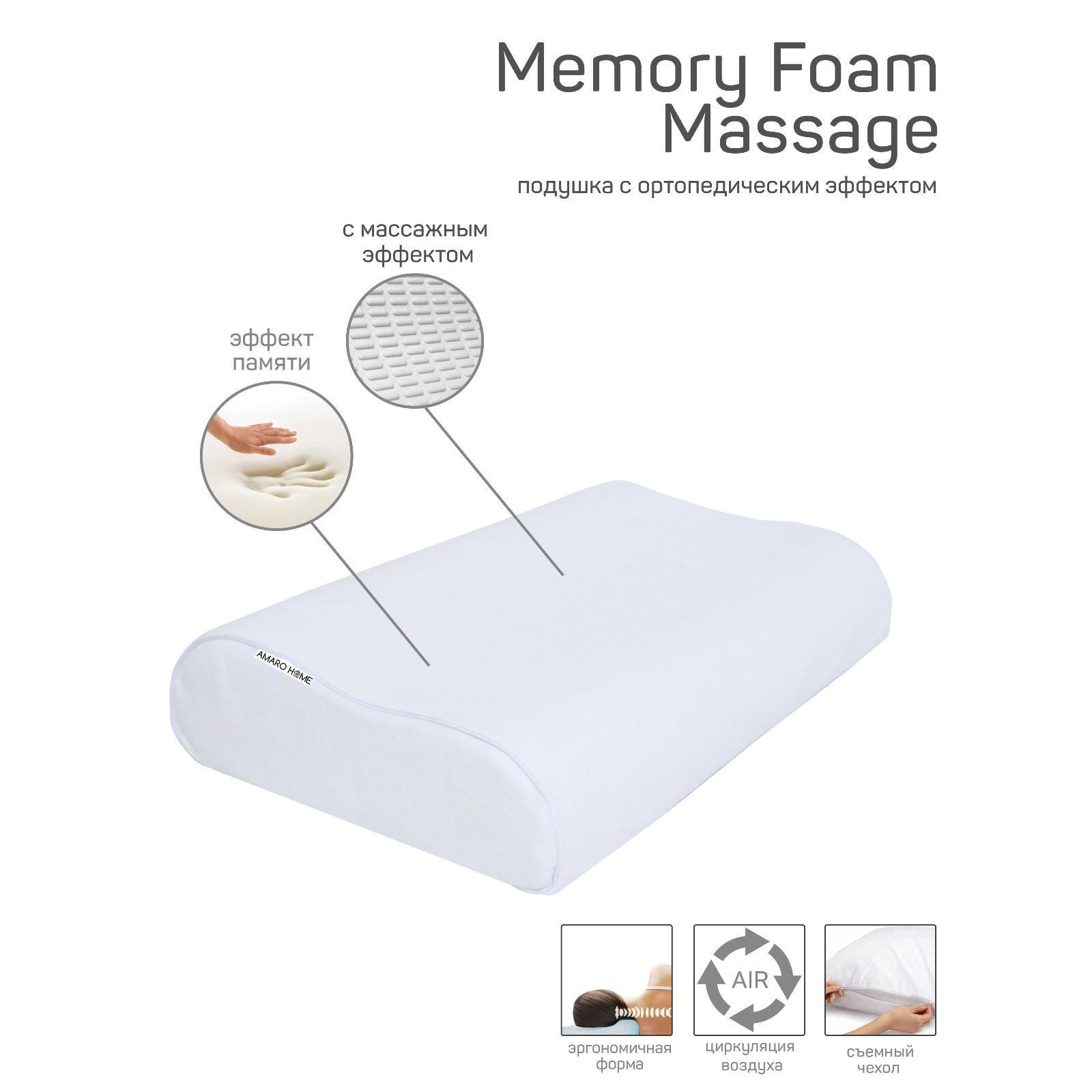 Подушка Memory Foam Massage, размер 60х38х12/10 см