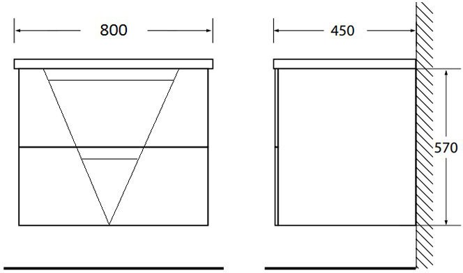База под раковину подвесная с двумя выкатными ящиками с доводчиками
