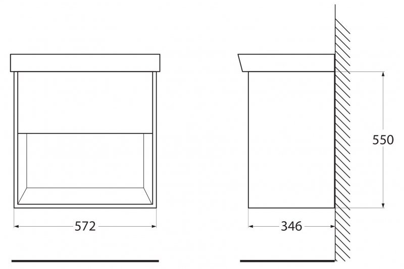 Ящик с врезной (фрезерованной) ручкой в плоскости фасада