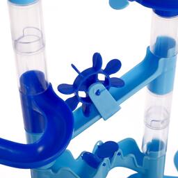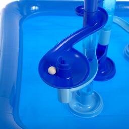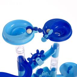 Из множества дорожек и мостиков малыш соберёт большие горки, а специальным шприцем он будет брызгать водой по шарикам и запускать их в лабиринт.