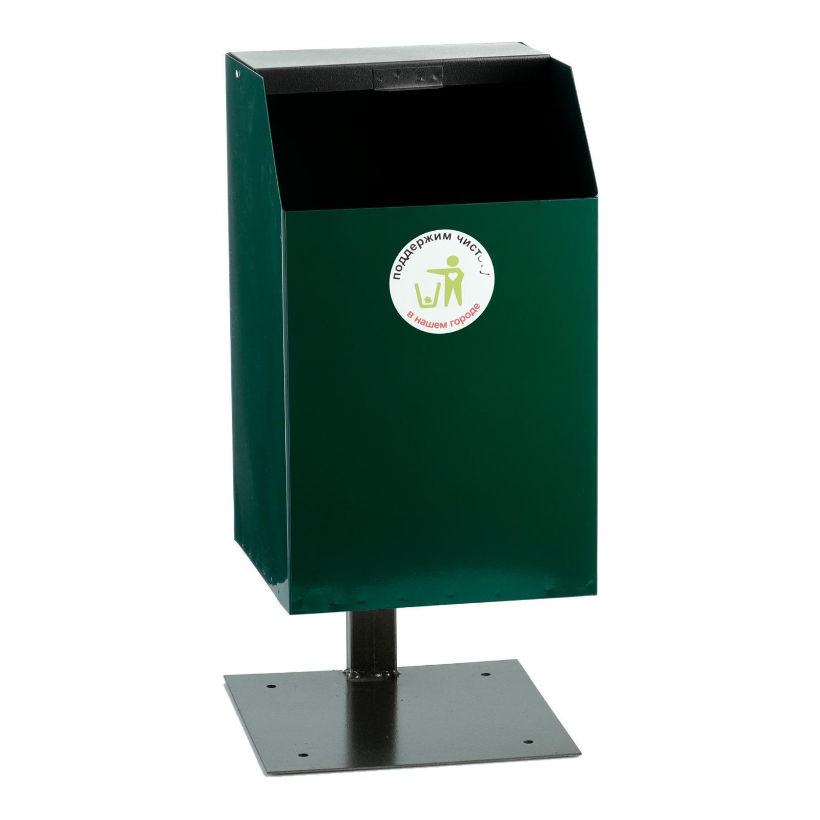 Урна уличная "Квадрат", с пепельницей, зеленая, 22л