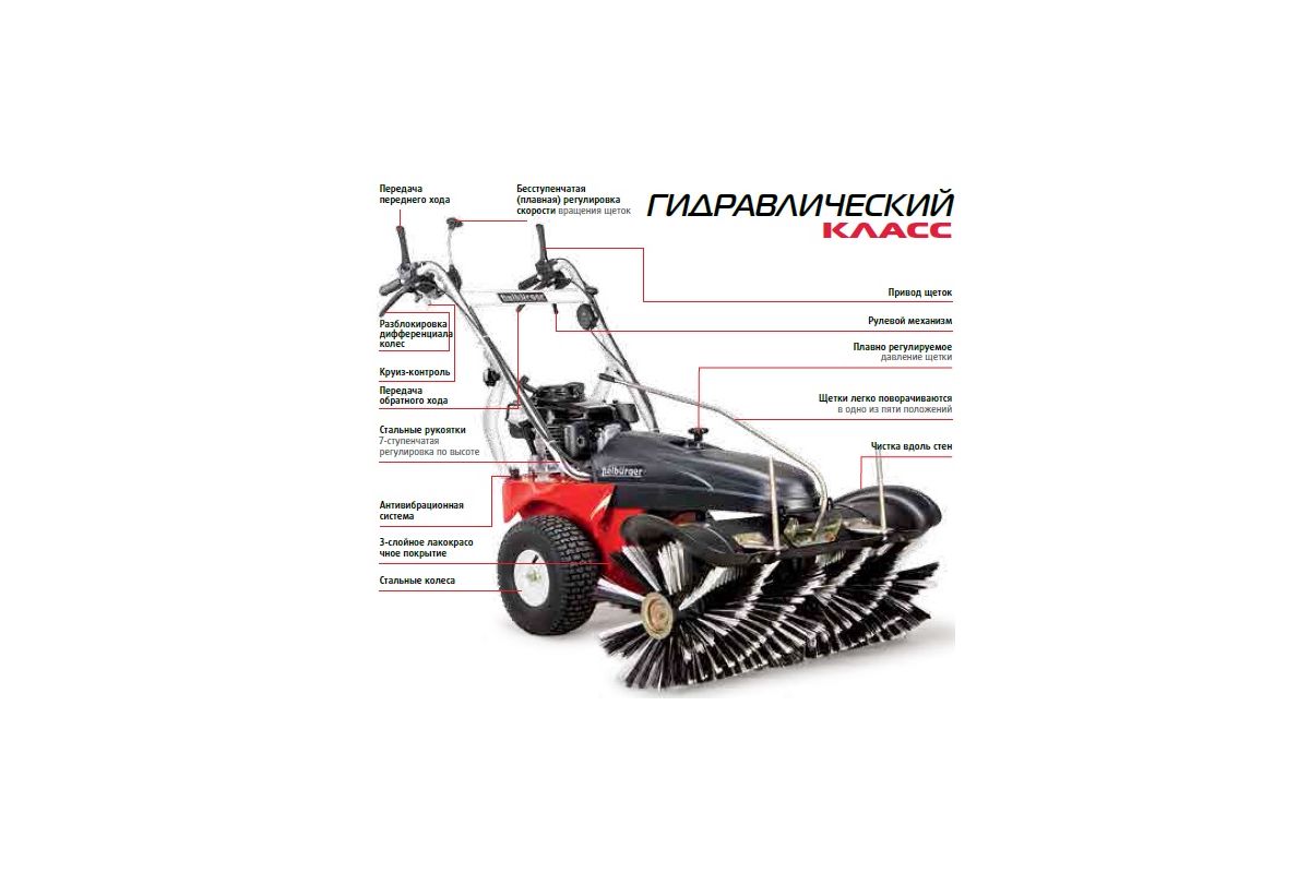 ПОДМЕТАЛЬНО-УБОРОЧНАЯ МАШИНА TIELBUERGER TK58 Professional HYDRO с двигателем Honda GXV160 (Япония). Усиленный редуктор и рама. Гидравлический привод на ведущие колеса значительно повышает ресурс подметальной машины. Страна производитель — Германия. Мощность двигателя — 6,5 л.с. Ширина захвата — 120 см. Диаметр щетки — 40 см. Плавная регулировка скорости движения подметальной машины. Скорость передвижения: от 0 до 4,9 км/ч. Производительность - 5800 кв.м./ч. Скорость вращения щетки плавно регулируется. Нулевой радиус разворота. Бесступенчатая регулировка высоты щетки над поверхностью. 3-х слойное лакокрасочное покрытие корпуса. Рукоятки регулируются по высоте. Щетка поворачивается в одно из 5-ти положений. Размер колес: 16х6,50-8. Вес: 127 кг. Гарантия — 2 года.