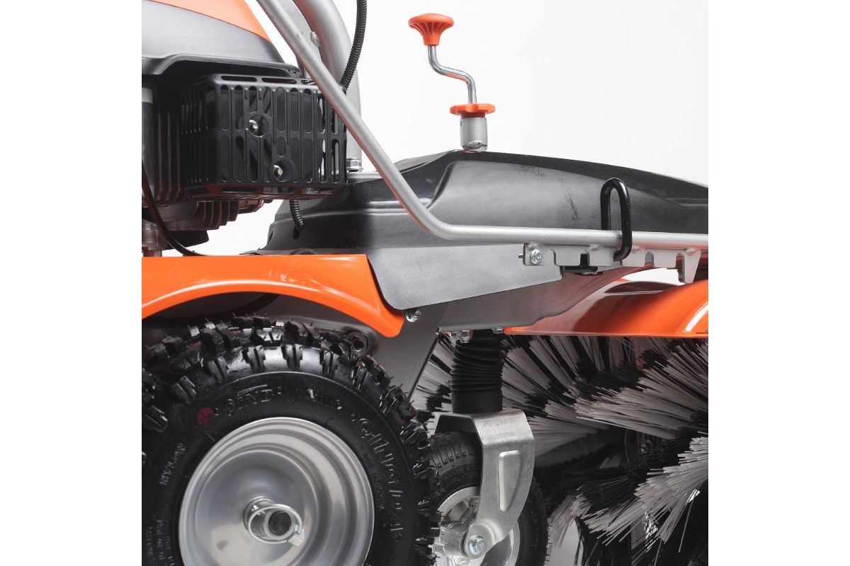 Мощность двигателя 6,л.с,; стартер электро/ручной; ширина щетки 100см; диаметр щетки 35см; скорости 4 вперед 2 назад; регулировка оборотов щетки 180-350 об/мин; регулировка ручек 3 положения; вес 79кг