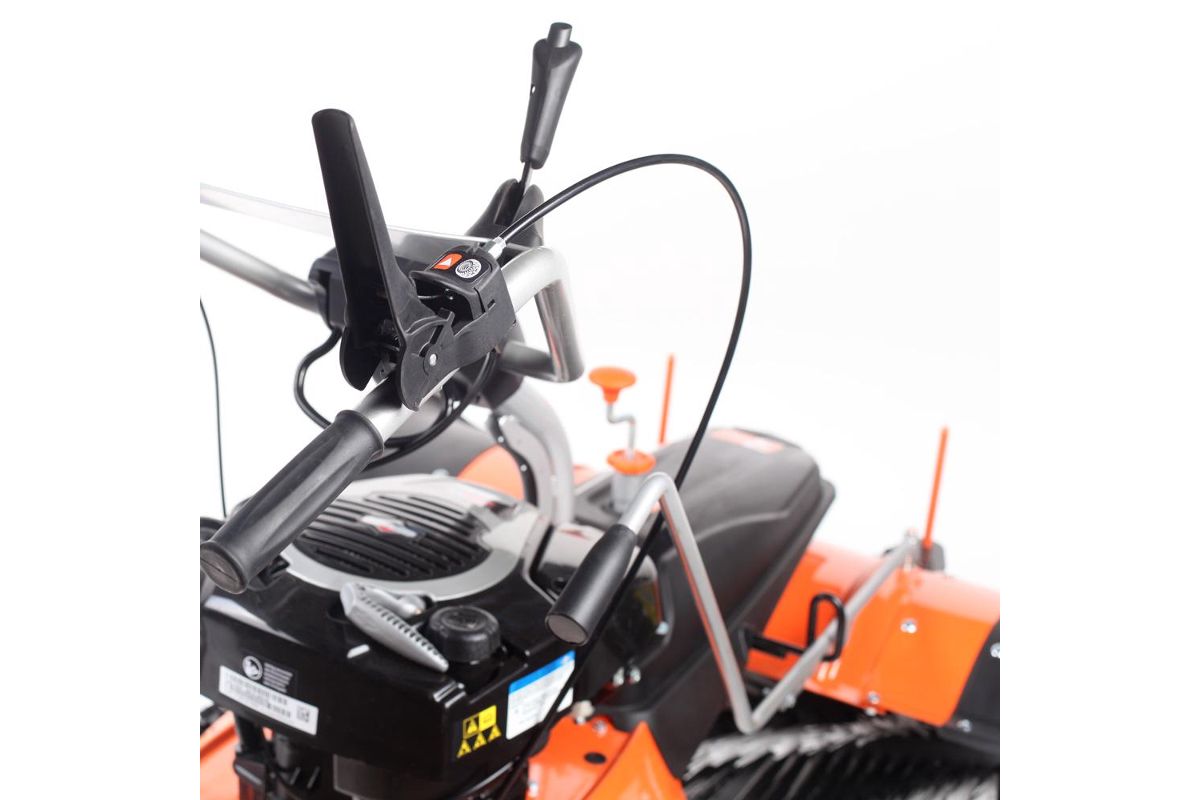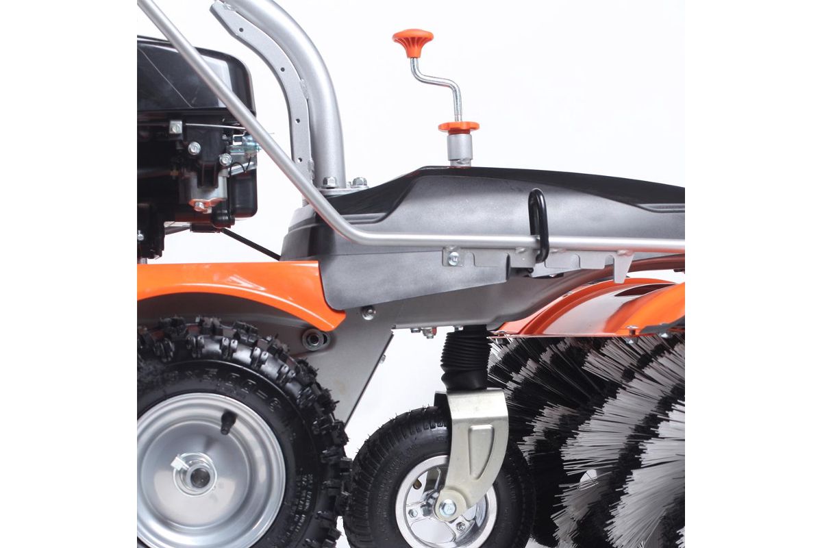 Двигатель B&S 750EX DOV; мощность двигателя 5,5,л.с,; стартер ручной; ширина щетки 100см; диаметр щетки 35см; скорости 4 вперед 2 назад; регулировка оборотов щетки 180-350 об/мин; регулировка ручек 3 положения; вес 76кг