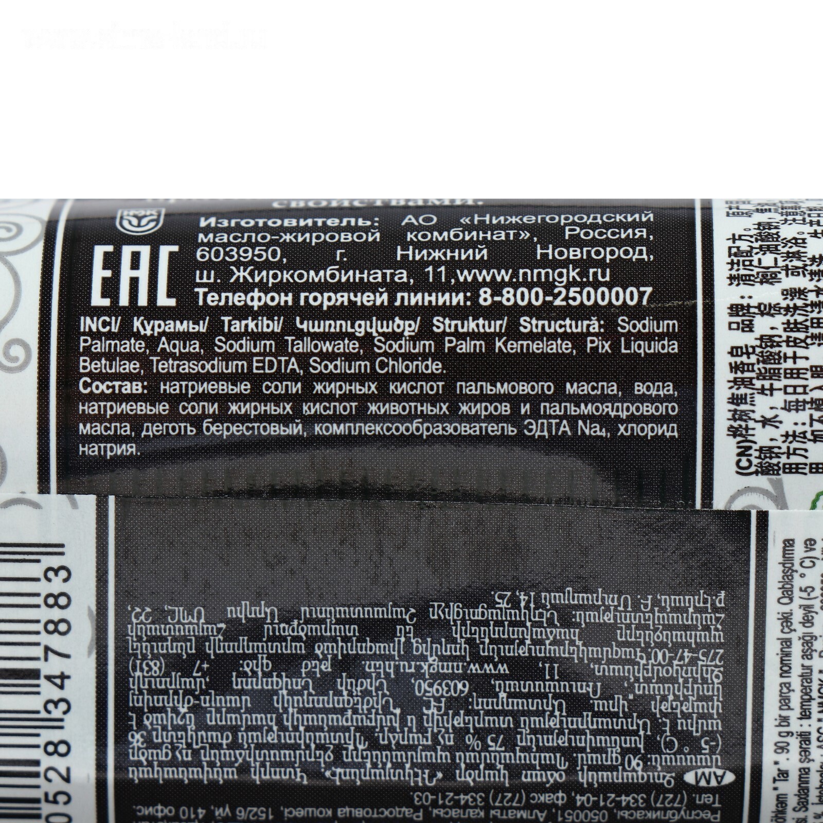 Состав: Sodium Palmate, Aqua, Sodium Tallowate, Sodium Palm Кernelate, Pix Liquida Betulae, Tetrasodium EDTA, Sodium Chloride.