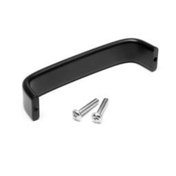 Данная дверная ручка представляет собой неподвижную скобу, которая крепится к поверхности мебели с помощью двух винтов. Модель выполнена из прочного алюминия и имеет чёрный цвет.