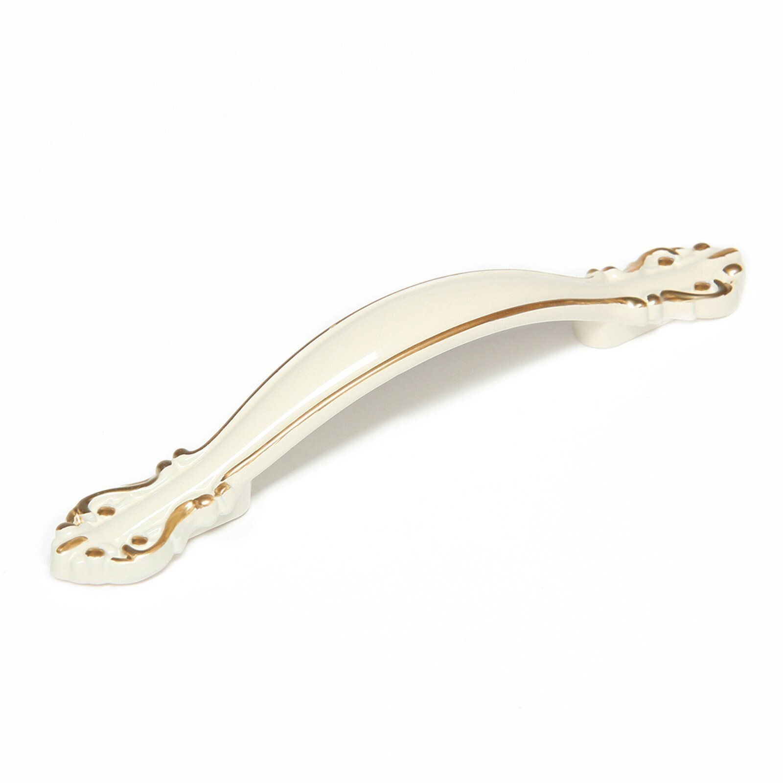 Интересный дизайн ручки сочетается с различными типами мебельного гарнитура. Фурнитура имеет привлекательный внешний вид и компактный размер. Белый оттенок с золотистыми вставками идеально подходит к мебельным фасадам в различной цветовой гамме.