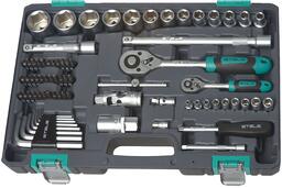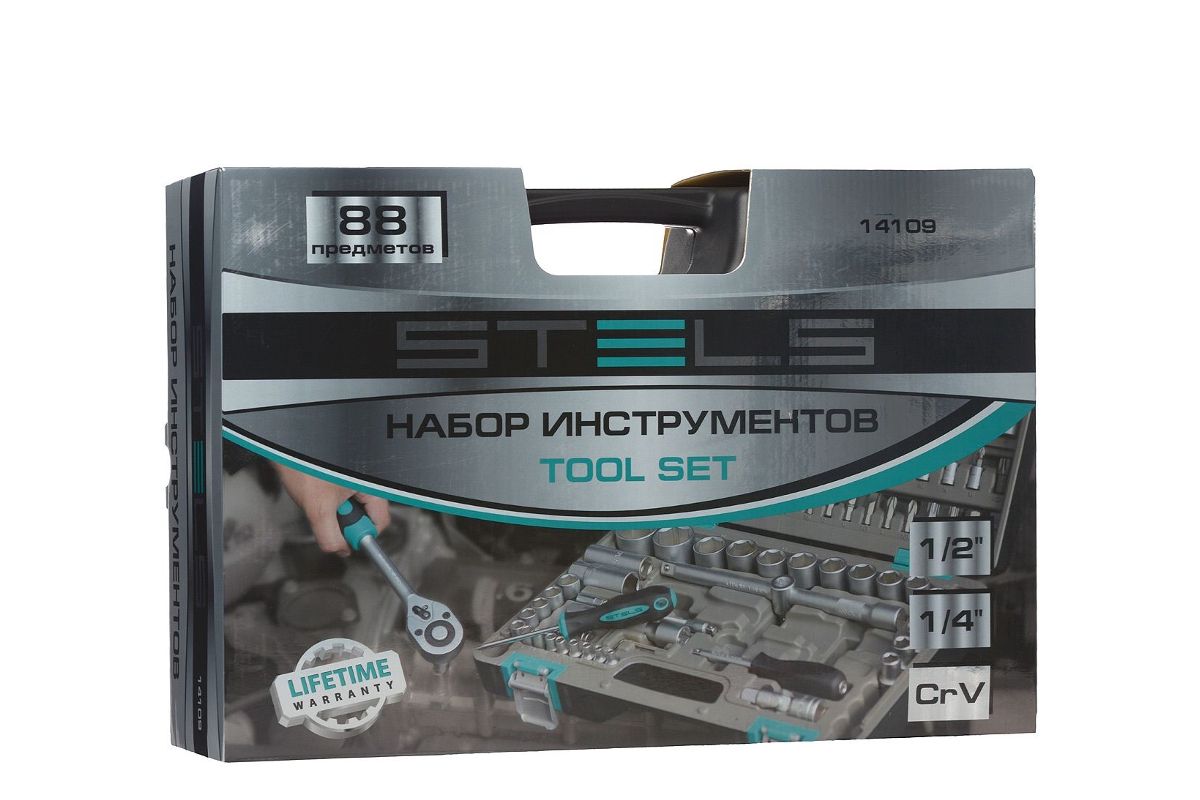 Набор инструментов STELS включает в себя 88 предметов. Он пригодится в гараже, на СТО, для ремонта техники и сборки мебели. Вес набора – 6,5 кг. Для удобства переноски на чемодане предусмотрена широкая ручка.