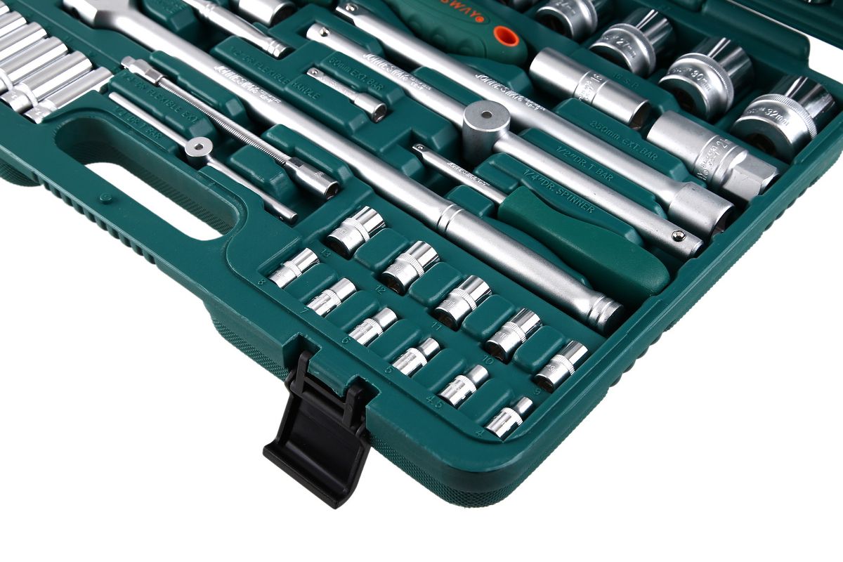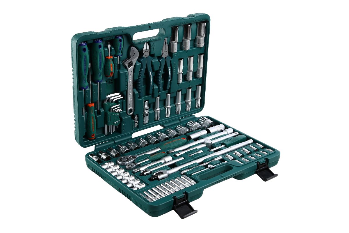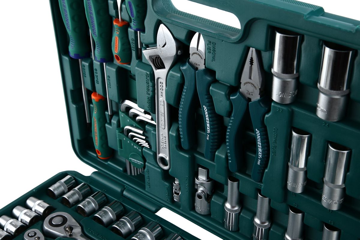 Набор инструментов JONNESWAY S04H52483S незаменим в работе профессионального автослесаря. В кейсе содержится 83 предмета. Основу набора составляют торцевые головки с посадкой 1/4" и 1/2". Их дополняет большое количество рукояток и удлинителей. Также представлены ключи-шестигранники, пассатижи, отвертки. Продуманную комплектацию отмечают и в отзывах о наборе JONNESWAY S04H52483S. В нем есть все необходимое для выездного ремонта.