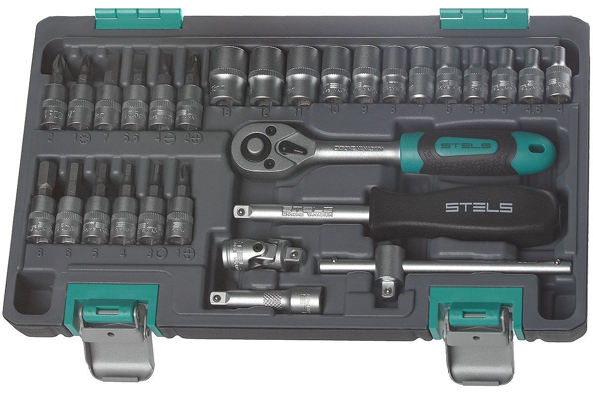 Набор инструментов STELS 14100 пригодится для монтажных работ, ремонта и обслуживания автомобиля. В комплекте 29 предметов, рабочие части которых выполнены из хромованадиевой стали. Они не подвержены коррозии и не деформируются даже при высоких нагрузках.