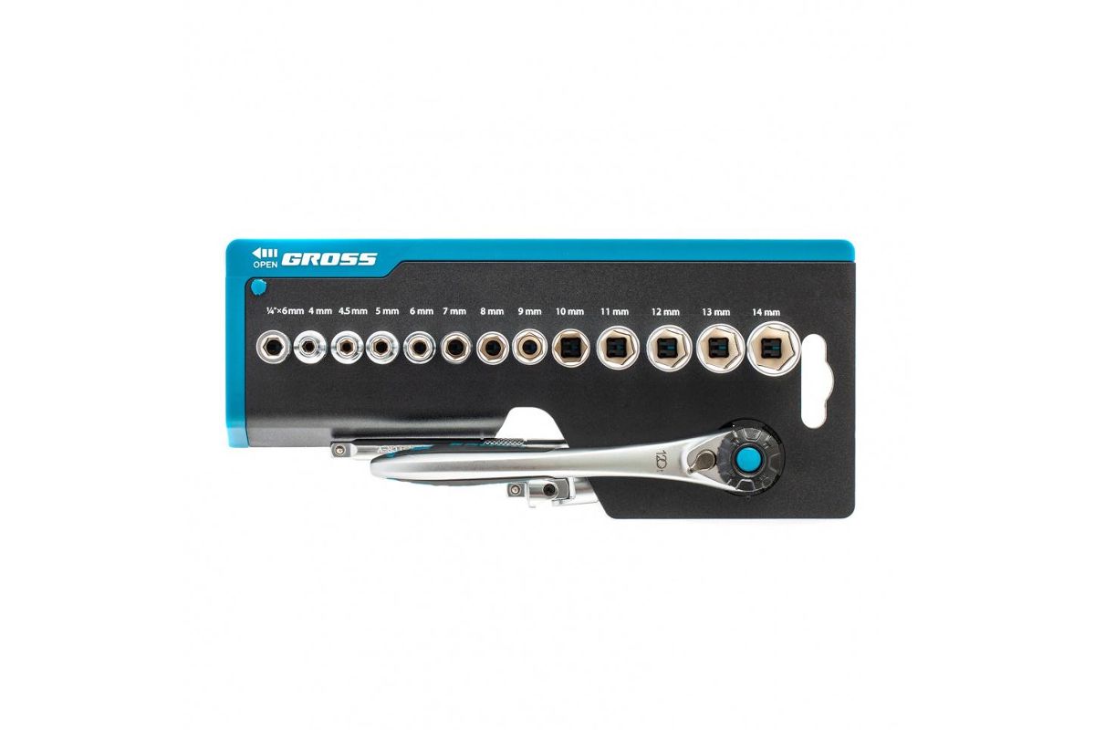Набор торцевых головок GROSS 14142 трещотка 120 зубьев, 36 предметов, 1/4'', CrV