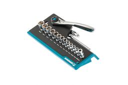 Наборы инструмента GROSS разработаны специально для автолюбителей и центров технического обслуживания.Головки и комбинированные ключи изготовлены из хромованадиевой стали, придающей инструменту исключительную твердость в сочетании с легкостью.Набор комплектуется трещотками с реверсом и быстрым сбросом, трещоточный механизм имеет 120 зуба и обеспечивает исключительную мягкость и плавность в работе.Шаг зуба 3 град.Все наборы упакованы в кейс.Наборы инструмента GROSS пригодятся вам не только в автомобиле.С их помощью можно проводить бытовой ремонт дома и на даче, ремонт бытовых конструкций и садовой техники.Набор предназначен для слесарно-монтажных работ.Состав набора:Ключ трещоточный 1/4'',Удлинитель 100 мм 1/4'', Головки торцевые 1 /4'': 4, 4.5, 5, 6, 7, 8, 9, 10, 11, 12, 13, 14 мм,Адаптер для бит 1/4'', Шарнир карданный 1/4'', Биты 1/4'': PH1, PH2, PH3, PZ1, PZ2, SL4, SL5.5, SL7, H3, H4, H5, H6, H7, H8, T8, T10, T15, T20, T25, T30.