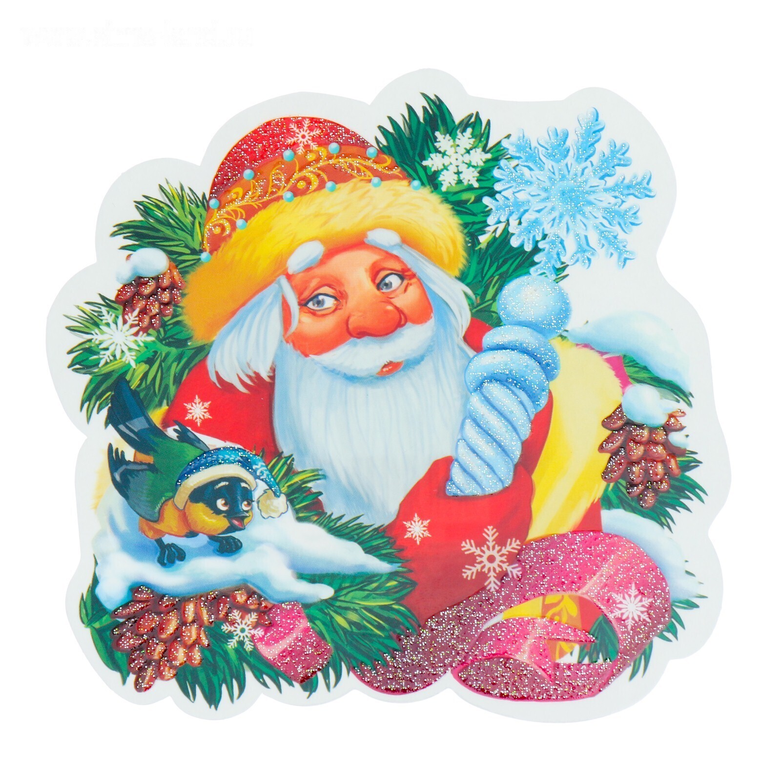 Украшение на скотче "Дед Мороз" глиттер, птичка