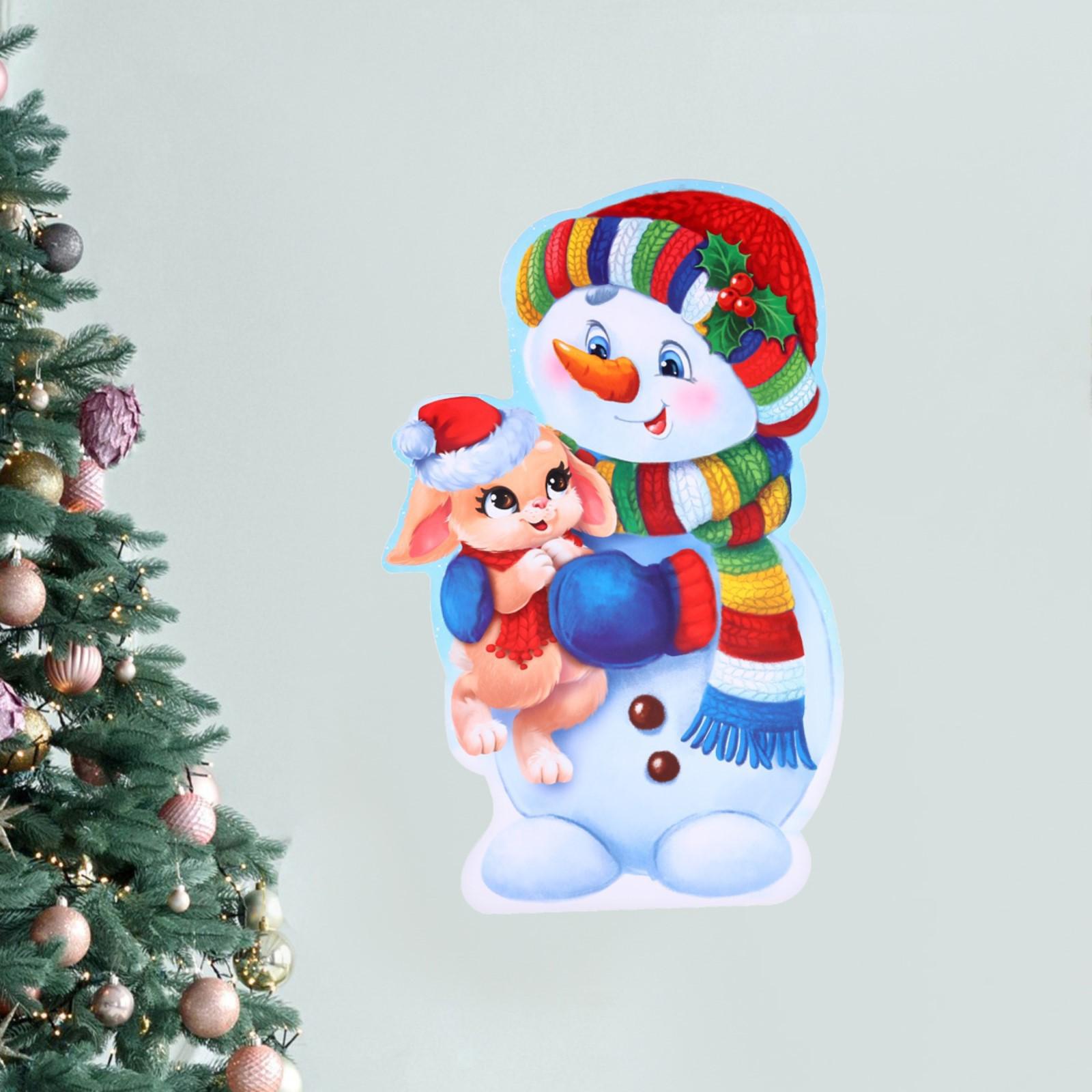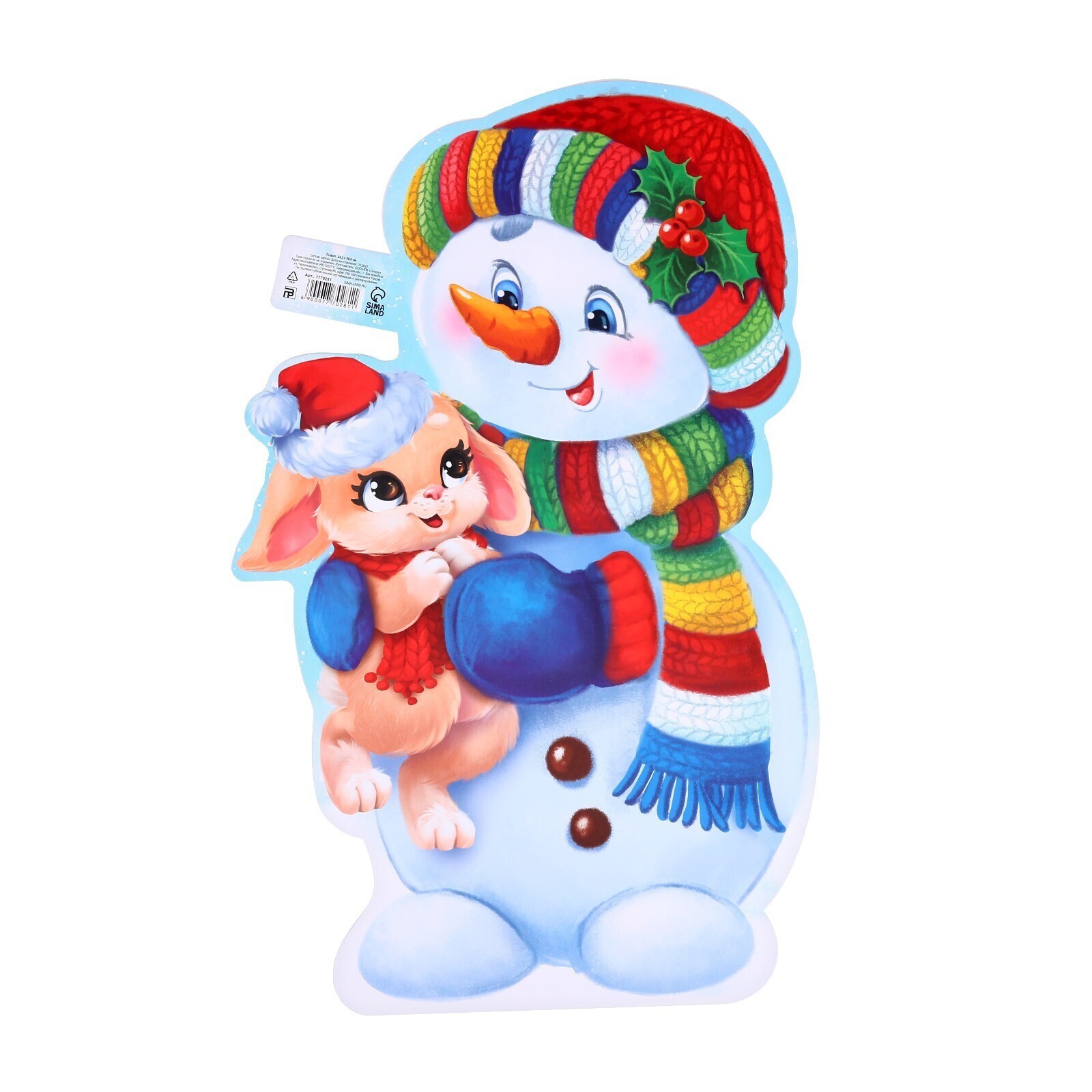 Плакат «Зайка и снеговик», 2023, 24,2 х 38,9 см., плотность 115 гр/кв.м