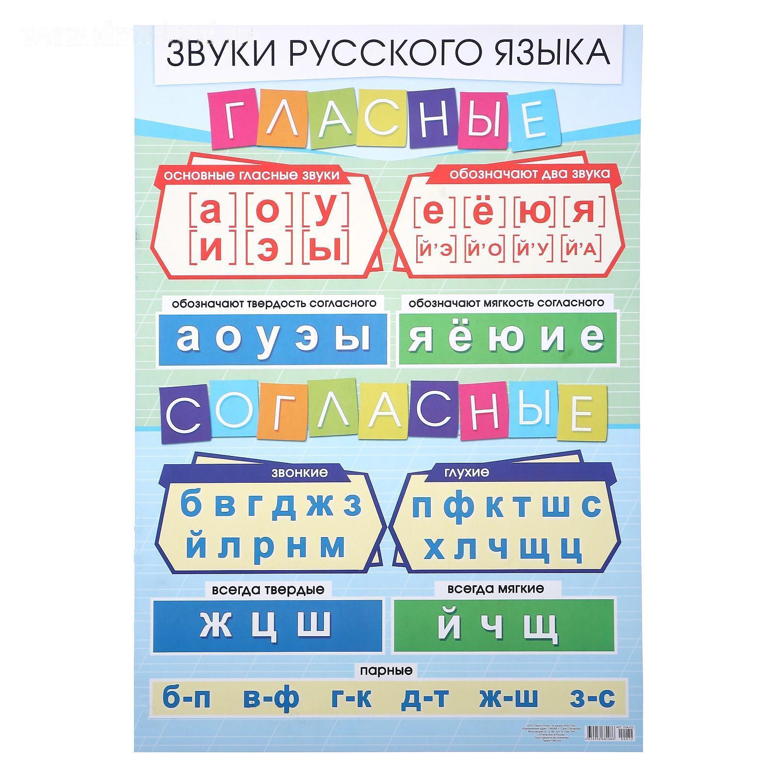 Плакат "Гласные и согласные звуки" А2