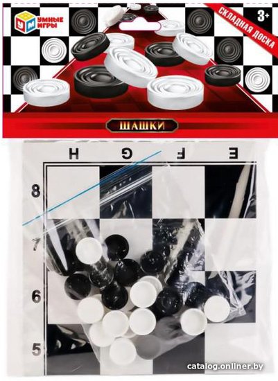 - Комплектация - складная доска из плотного картона- 12 белых шашек- 12 чёрных шашек