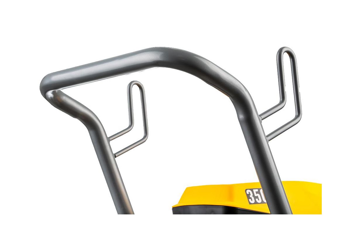 Краскопульт установлен за 2 колеса. За высокую ручку его удобно передвигать.