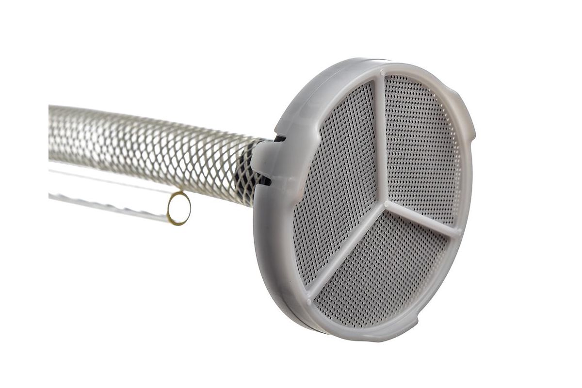 Забирает материал из любой ёмкости. Просто подставьте её под всасывающее сопло.
