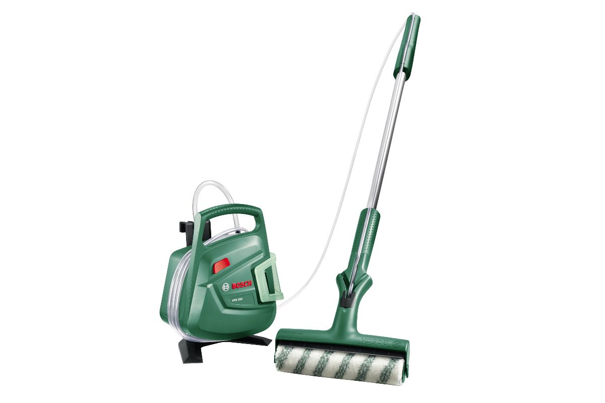 Краскопульт BOSCH PPR 250 предназначен для покраски различных поверхностей водоэмульсионной краской. В комплект входит база с насосом, электрический валик, равномерно подающий краску, удлинитель рукоятки, система Easy Clean (два универсальных переходника на водопроводный кран).