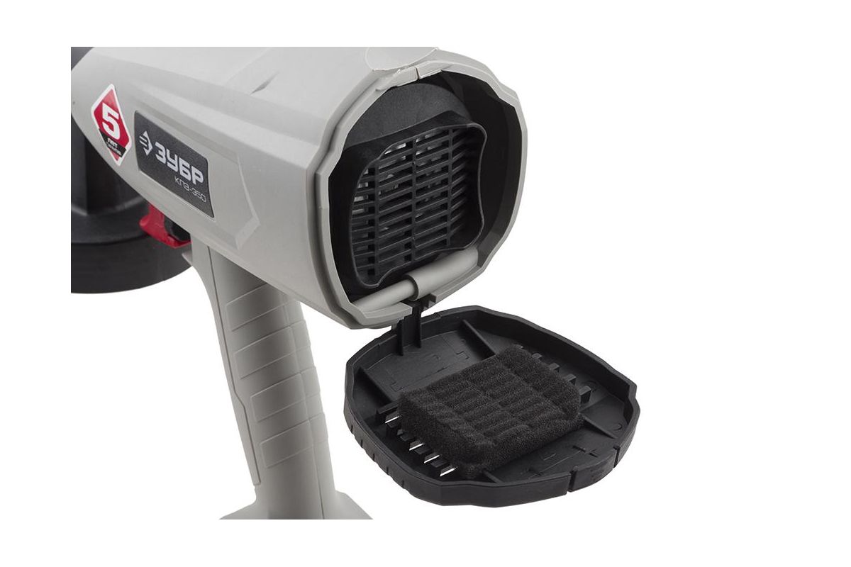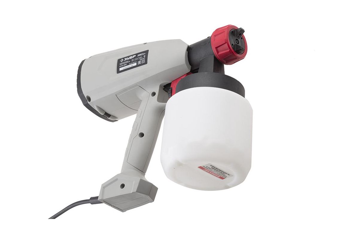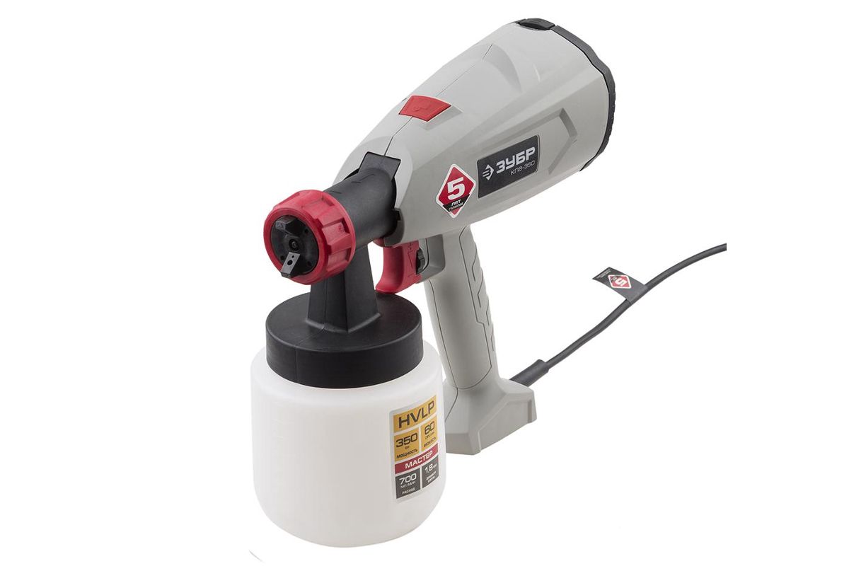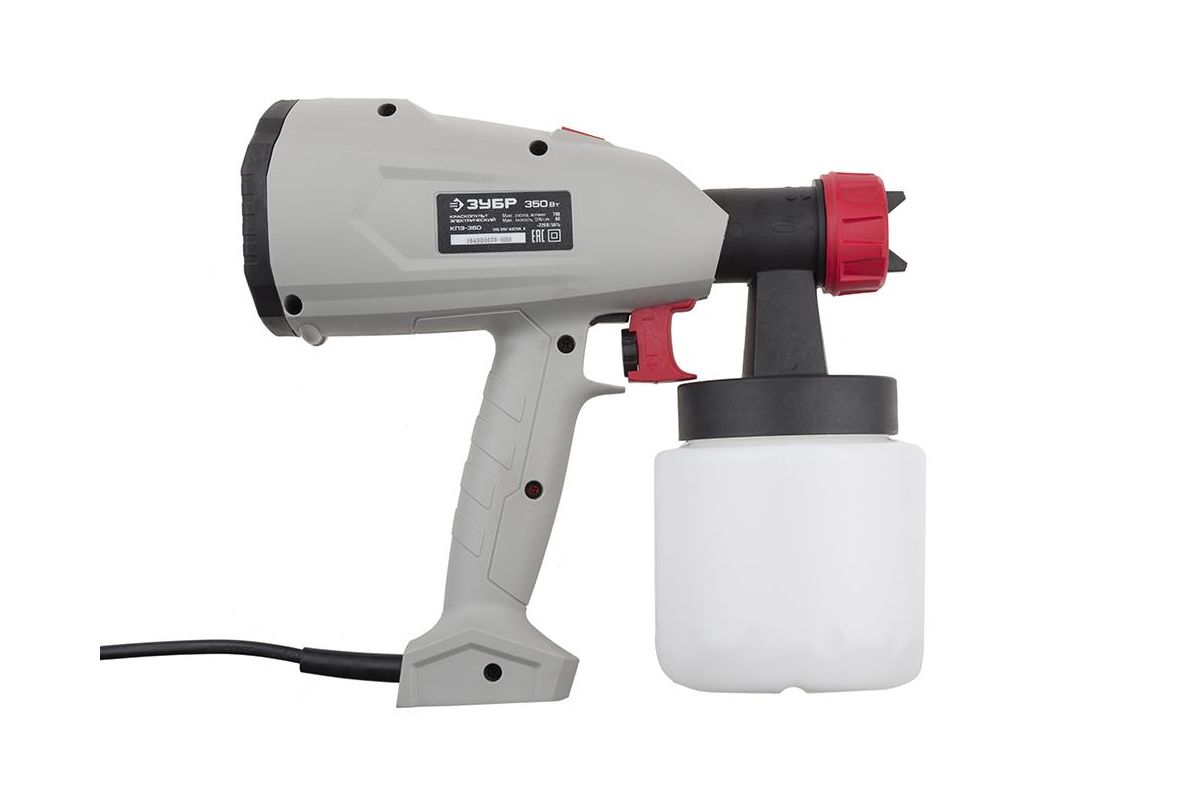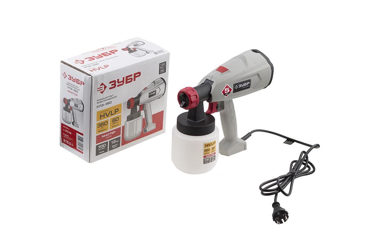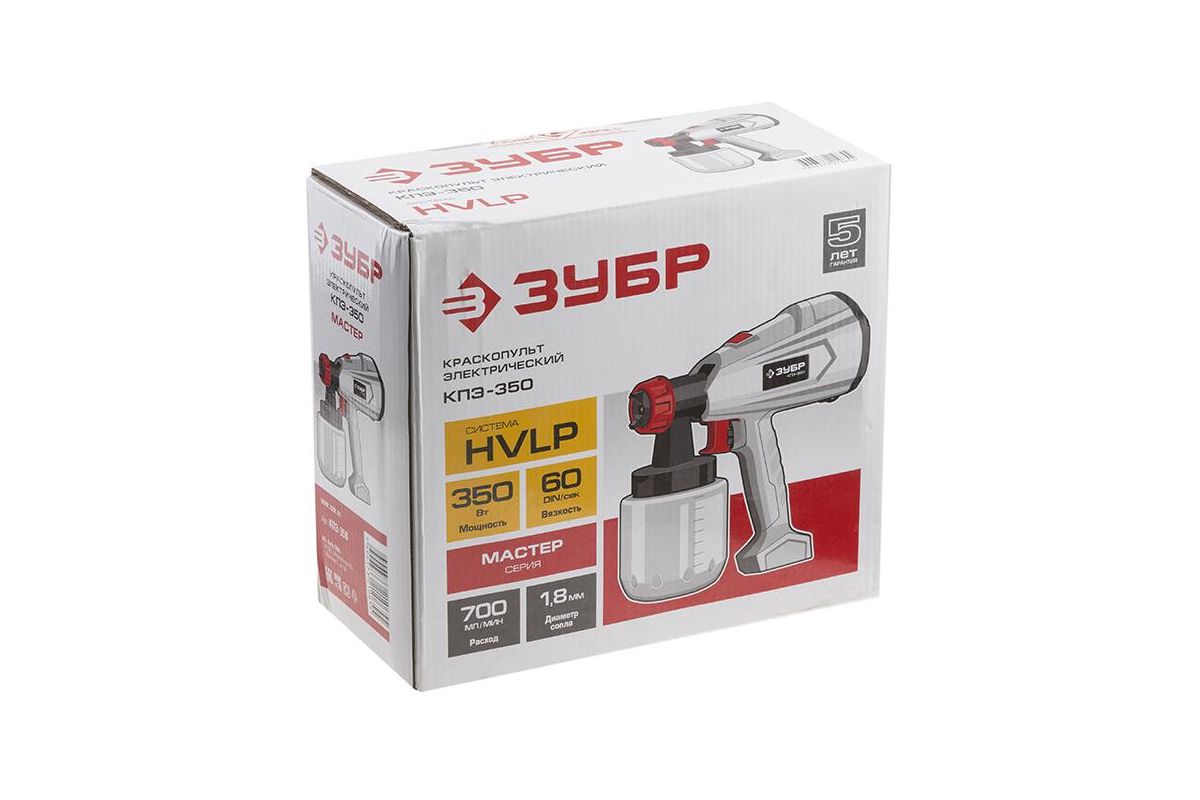 ЗУБР КПЭ-350 – сетевой воздушный краскопульт. Мощность 350 Вт. Бачок располагается снизу, объём 0,8 л. Диаметр сопла – 1,8 мм. Подходит для нанесения красок, лаков, пропиток шпатлёвок и других материалов вязкостью до 60 DIN.