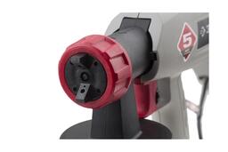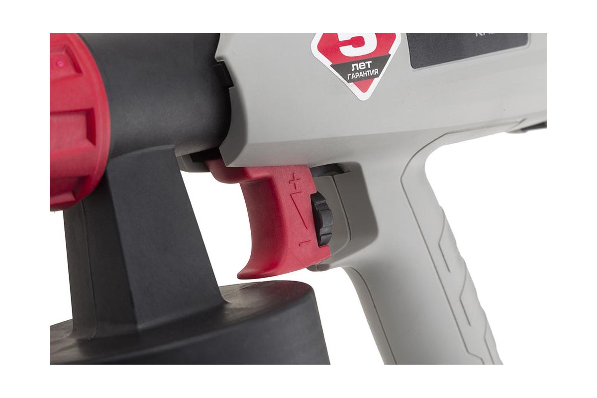 Расход настраивается поворотом колеса у кнопки пуска. Позволяет настроить краскопульт на разные материалы.