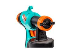 Преимущество инструмента — высокая производительность. Краскопульт распыляет жидкость со скоростью до 320 мл/мин. Для более экономного расхода материала интенсивность подачи можно сократить.