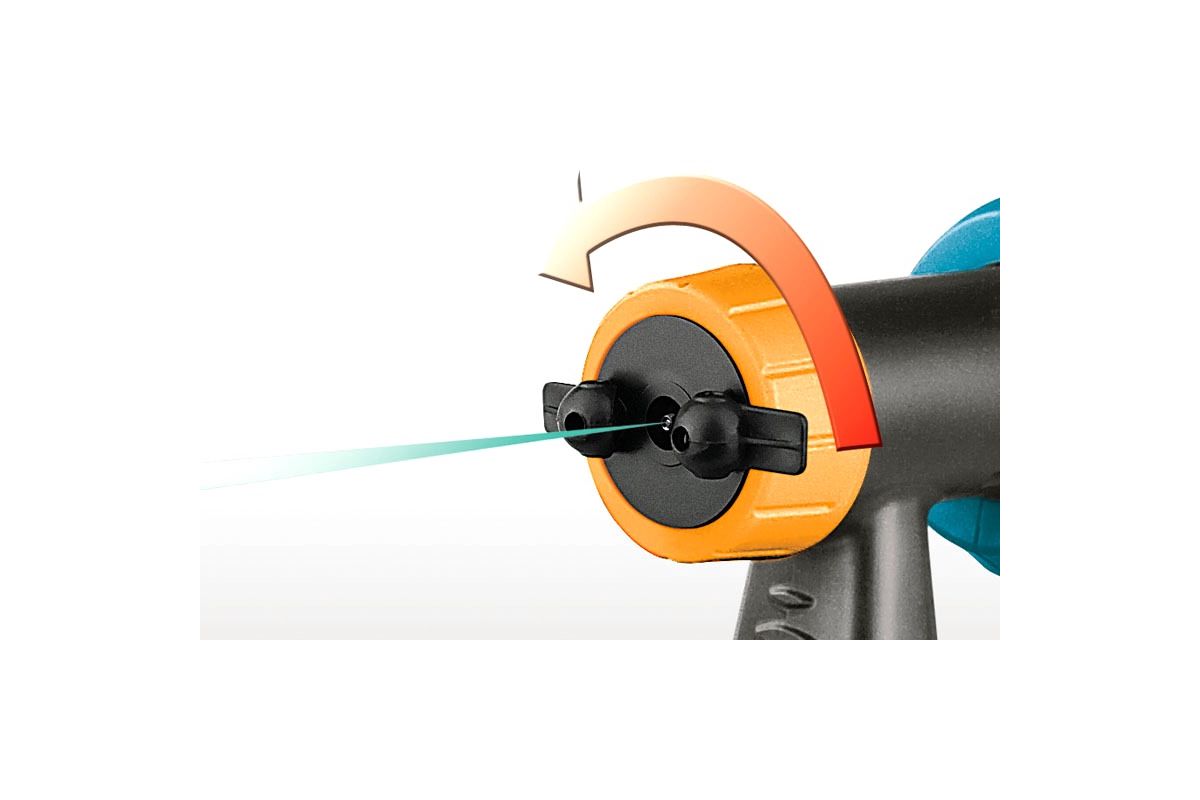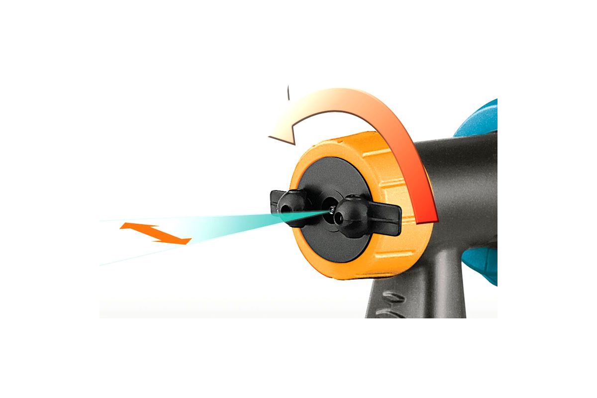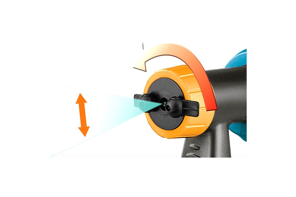 В распылителе используется система HVLP. Распыление реализуется не за счет давления, а за счет большого объема воздуха. Преимущества подхода – высокий коэффициент переноса краски (> 65%) и уменьшение «окрасочного тумана».