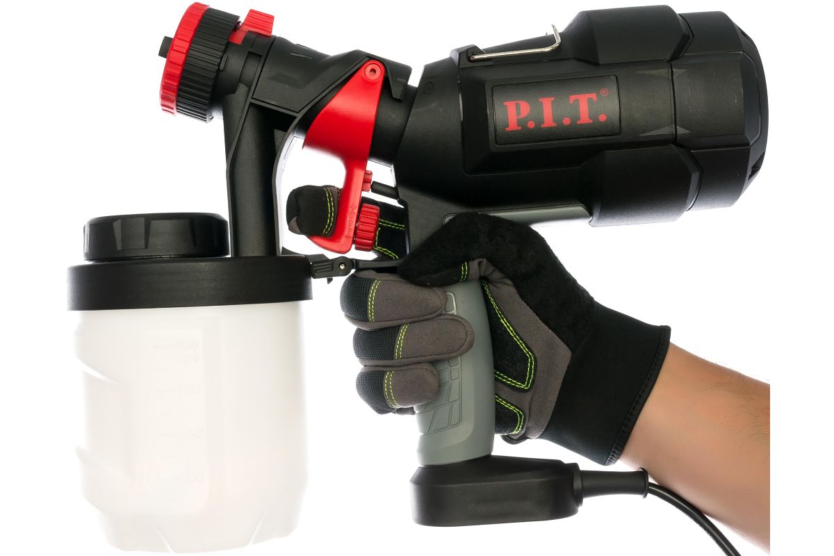 Краскораспылитель P.I.T. PSG3021-C PRO предназначен для нанесения на поверхность лакокрасочных материалов. Прорезиненная накладка на рукоятку имеет рельефную структуру для комфортного удержания устройства в руке. Большое горлышко бака позволяет аккуратно залить краску без боязни испачкаться. Мощность в 500 Вт обеспечивает производительность в 0.8 л/мин.