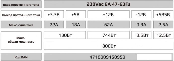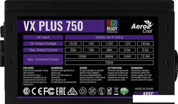 VX Plus 800 RGB - 800W , ATX v2.3 , Fan 12cm , 500mm cable , Retail